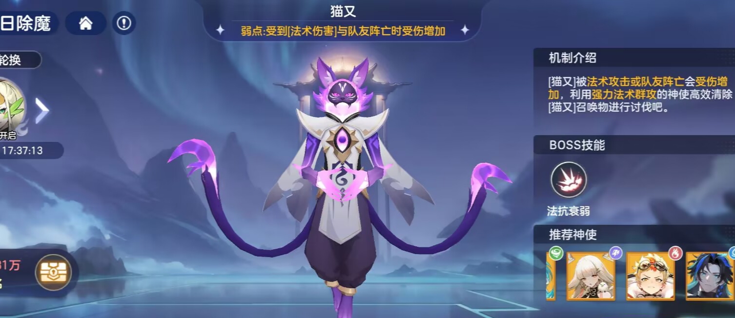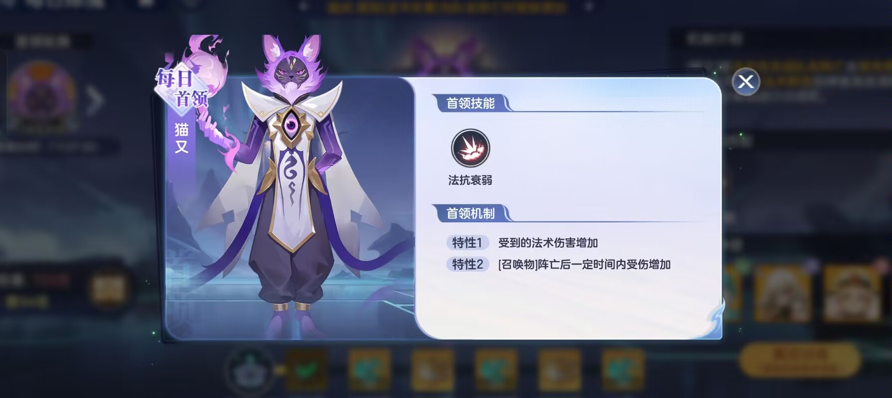 一:【首领:猫又】机制解读。猫又的机制为:被法术攻击或者是队友阵亡,就可以让猫又受到的伤害提升。