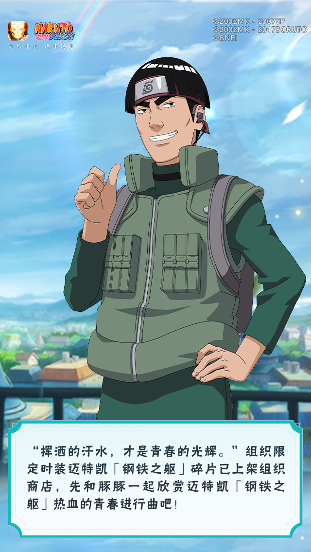 钢铁凯开启八门遁甲·惊门,跃至空中快速挥拳,连续释放朝孔雀攻击,最后释放昼虎冲出终结对手,豚豚建议在斩杀时使用噢~