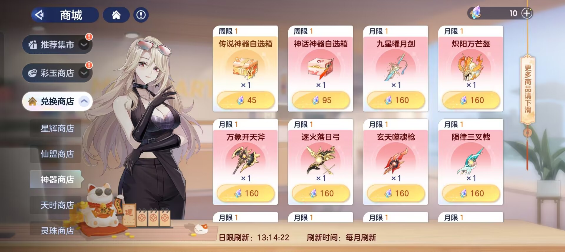 然后自己阵容的主力角色的神器兑换出来了以后,可以考虑把核心刚需角色的神器兑换出来。