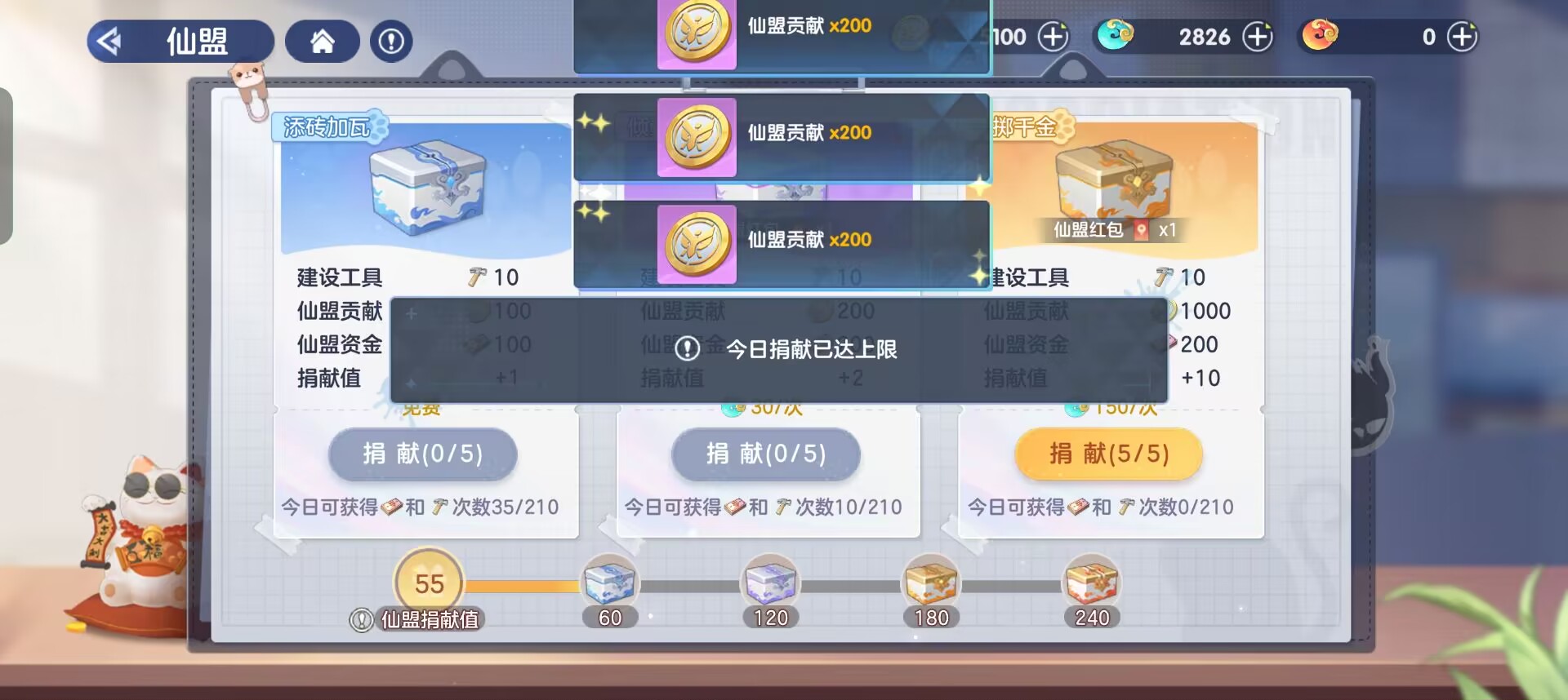 具体的兑换顺序为:①仙盟3级前优先兑换:【各类宝箱】。
