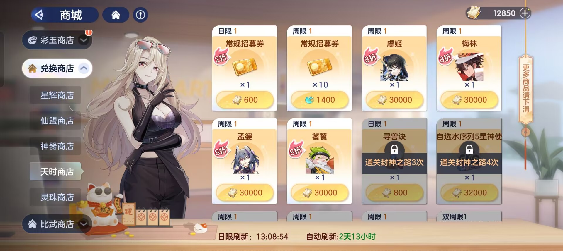 4:【天时商店】兑换推荐。使用【天时押契】兑换的商店。天时押契,主要的获取途径就是【封神之路】。