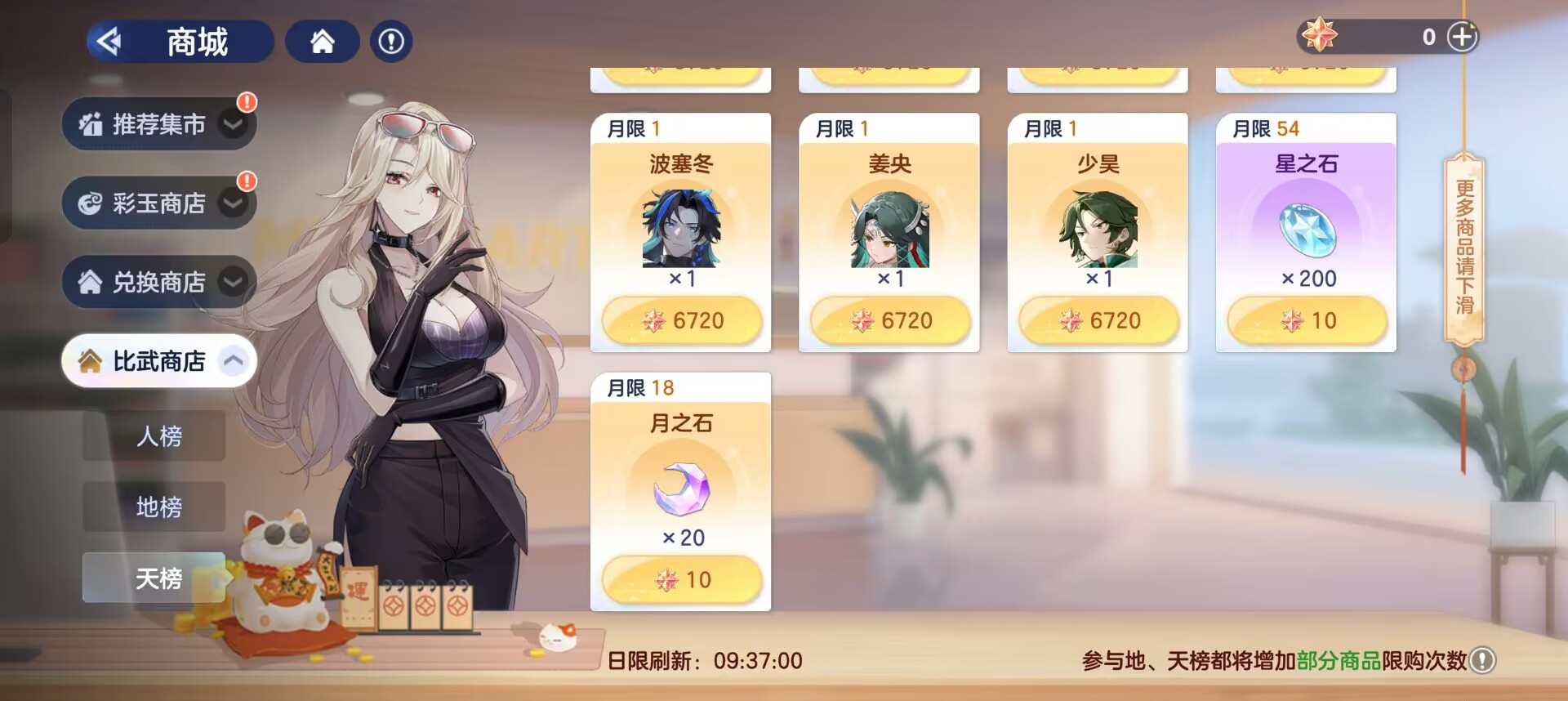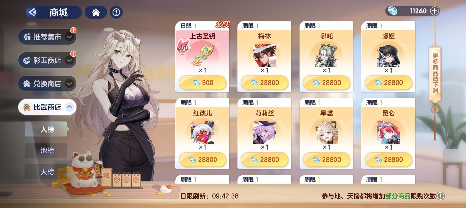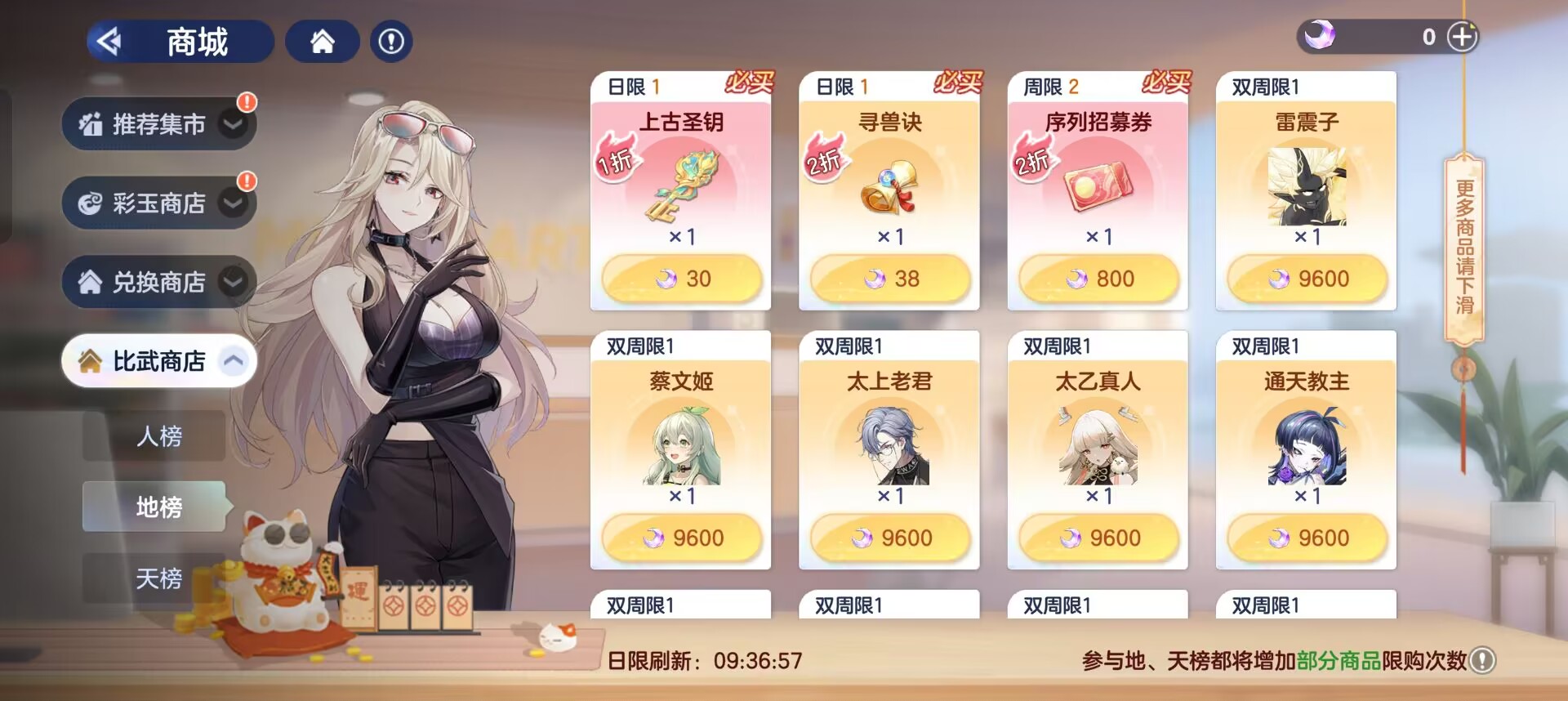 分别是:①【人榜商店】②【地榜商店】③【天榜商店】每个商店里面的资源都是物超所值的。