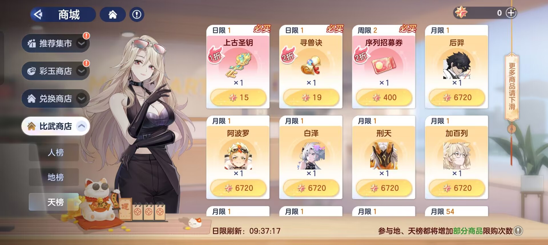 3:【天榜商店】兑换推荐。天榜商店能够兑换【稀有绝世品质】的神使。