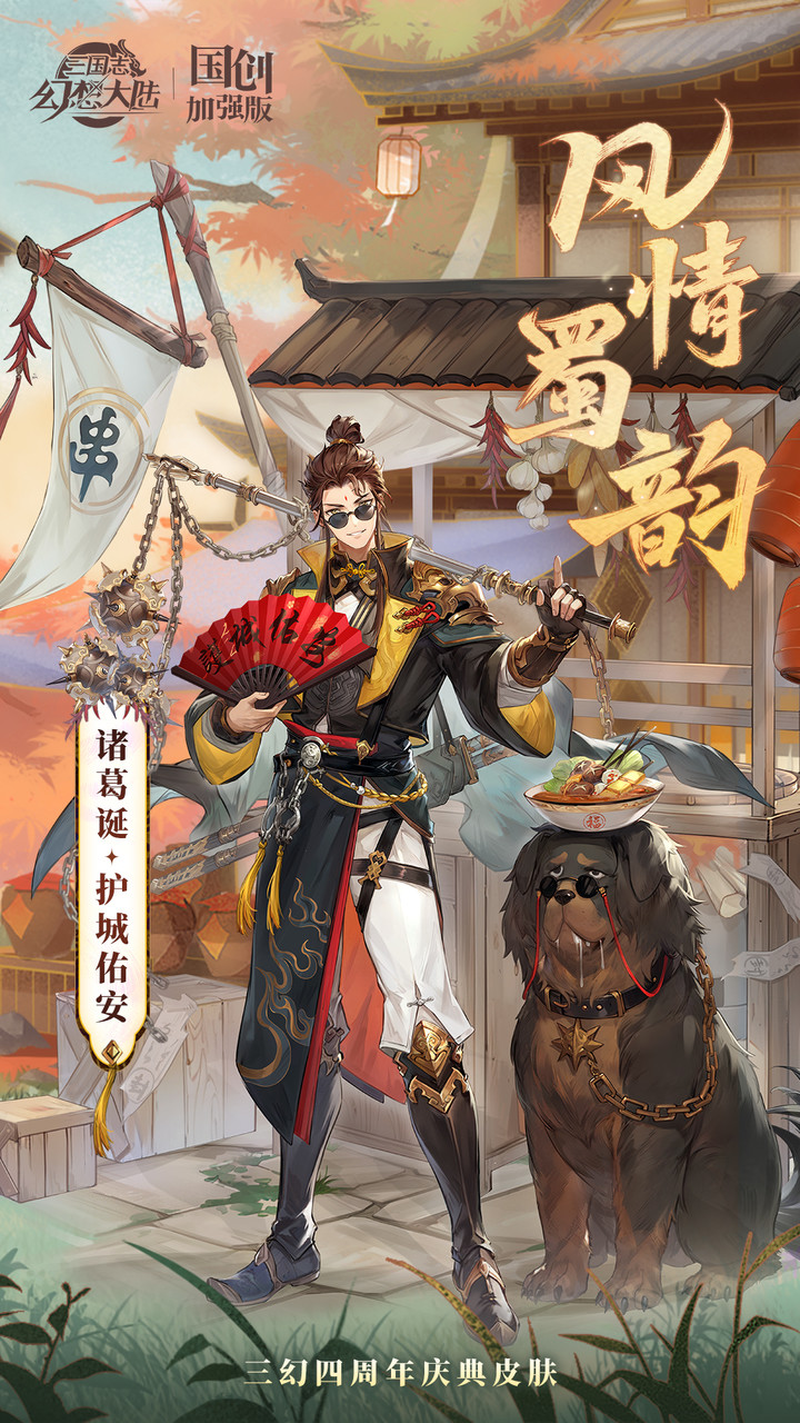 机巧博览会期间,诸葛诞有了一个新任务——巡察维护市镇街巷的安宁和平,区区屯卫任务对他来说自然十分轻松,不在话下。他更喜欢的还是带着狗狗肆意在城中小巷踱步,跟着嗅觉指引,在火辣鲜香诱人垂涎的串串摊面前停下,面对摊主惊恐的表情,展开折扇拍下铜板:“给我也来一份!”