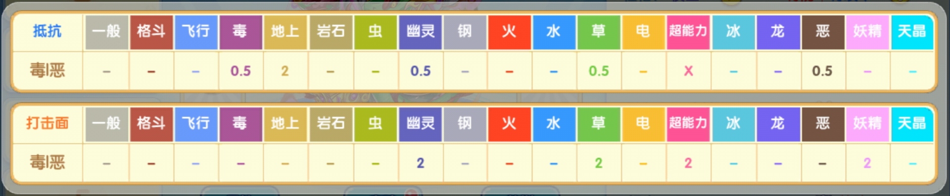 弱点就一个地上系,这样我们可以考虑带一些飞行系宝可梦或是带一些免疫地上系技能的宝可梦,对此做出一些适当的联防即可。