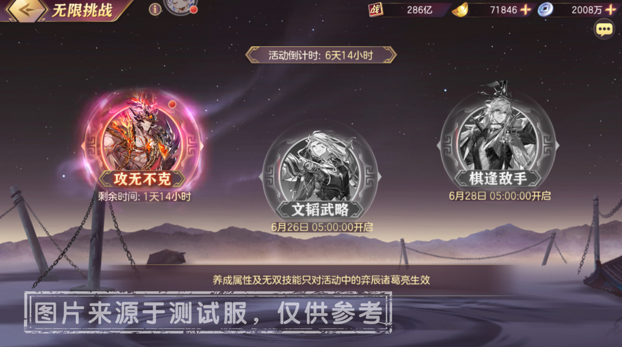 2、活动限定养成材料「将魂精魄」将在活动结束后清空,请小将军们及时使用,提升玩法内阵容属性,突破更多关卡吧!