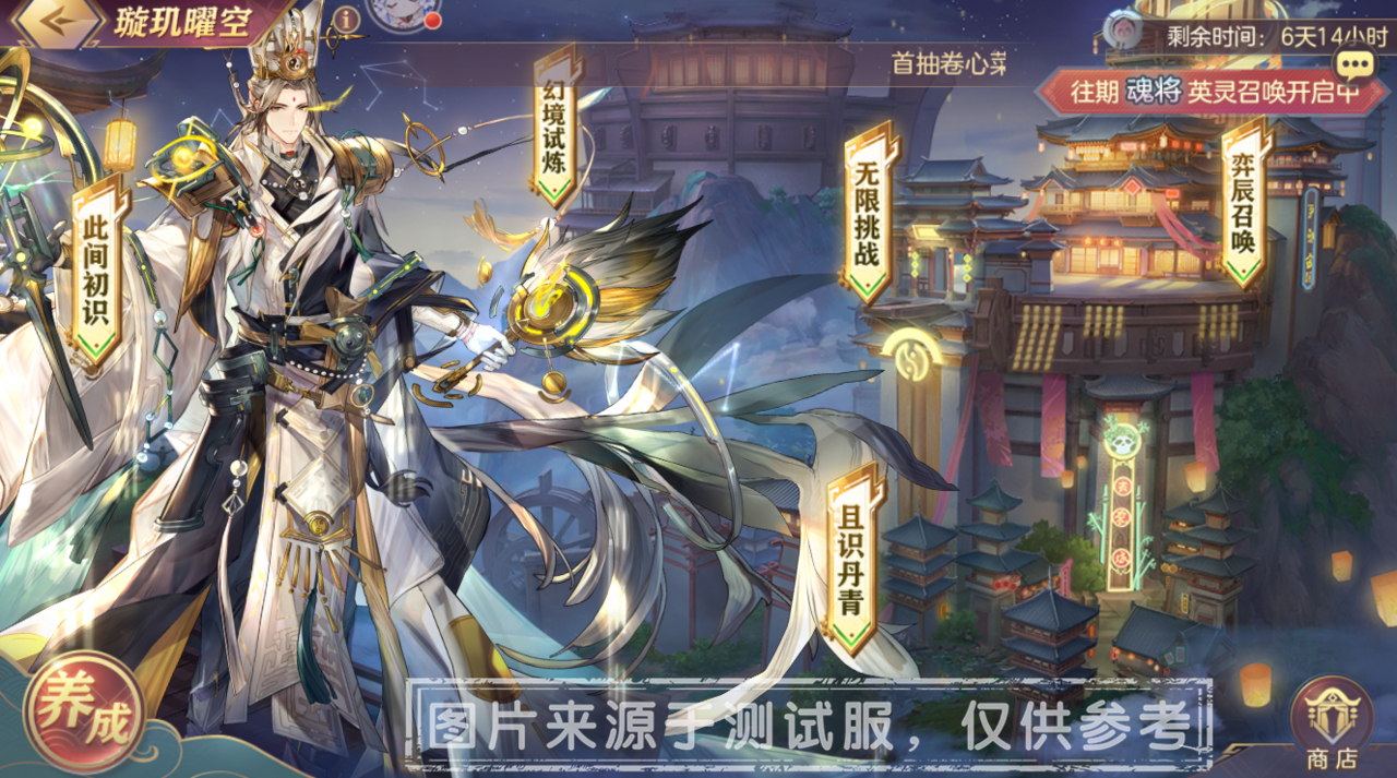 活动期间,通过【主界面左侧入口】即可进入「魂将-弈辰诸葛亮」的专属活动【璇玑曜空】,自选关卡条件的无限挑战、活动专属的限时养成,并且多达70关的幻境试炼关卡,将给小将军带来全新的策略玩法体验!参与活动即可将「魂将-弈辰诸葛亮」领回家!