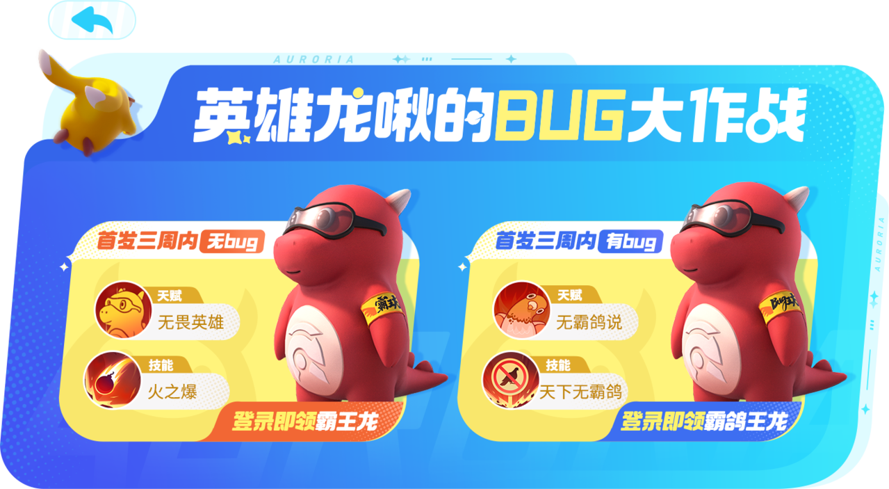 为了表达我们的决心,制作人Chris承诺:如果游戏上线后有任何BUG,代表形象的「英雄龙啾」将直接改为「霸鸽王龙啾」,并对这只登录即送的啾啾进行全方面的技能和词条加强,以保证大家的游戏体验。