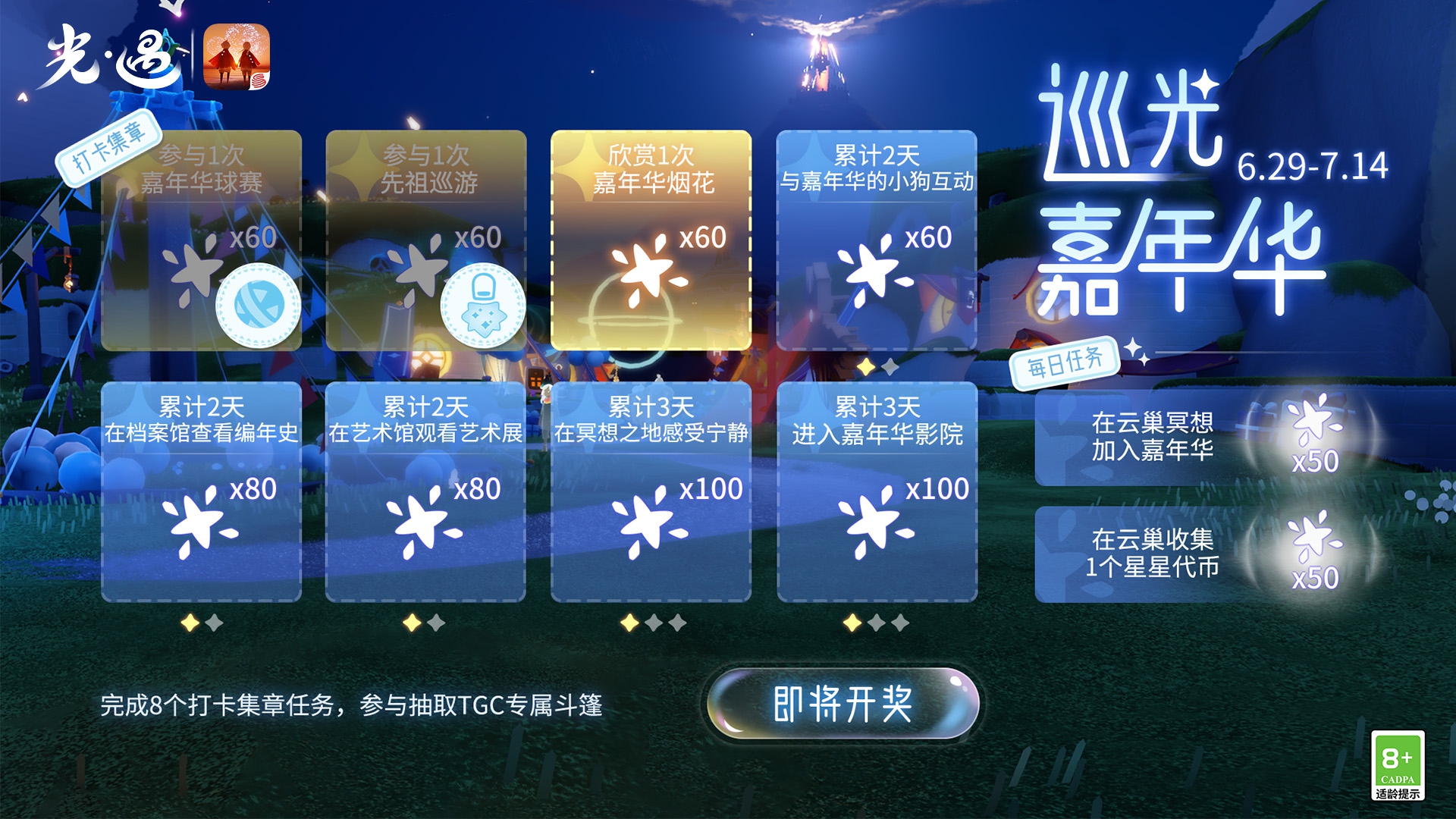 完成以上8个打卡任务后,点击抽奖按钮可参与抽取TGC专属斗篷