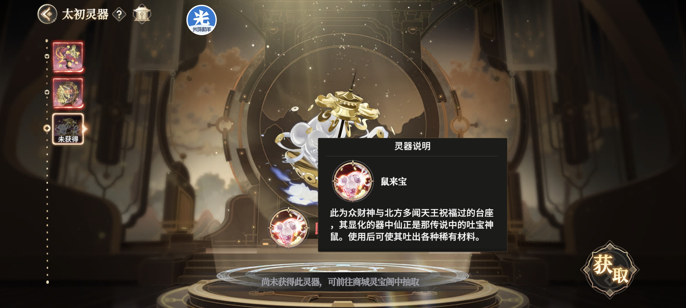 鼠来宝的主要作用为通过积攒灵器能量来获得各种稀有养成资源,如水月镜花、耀星金、自选灵响、琉璃珠等。