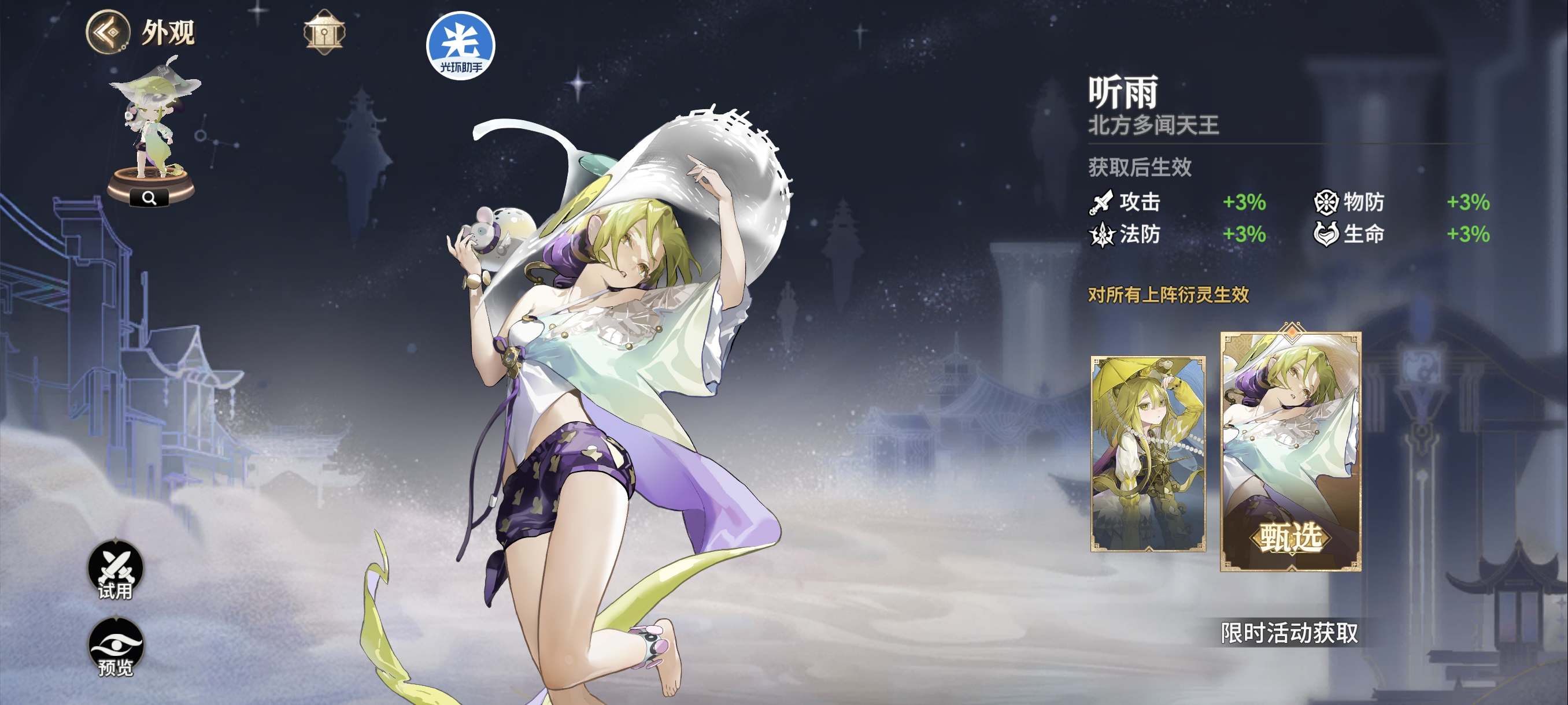 金鼻白毛老鼠精、多闻天王、郭子仪的夏日泳装皮肤将于6.29正式上线。