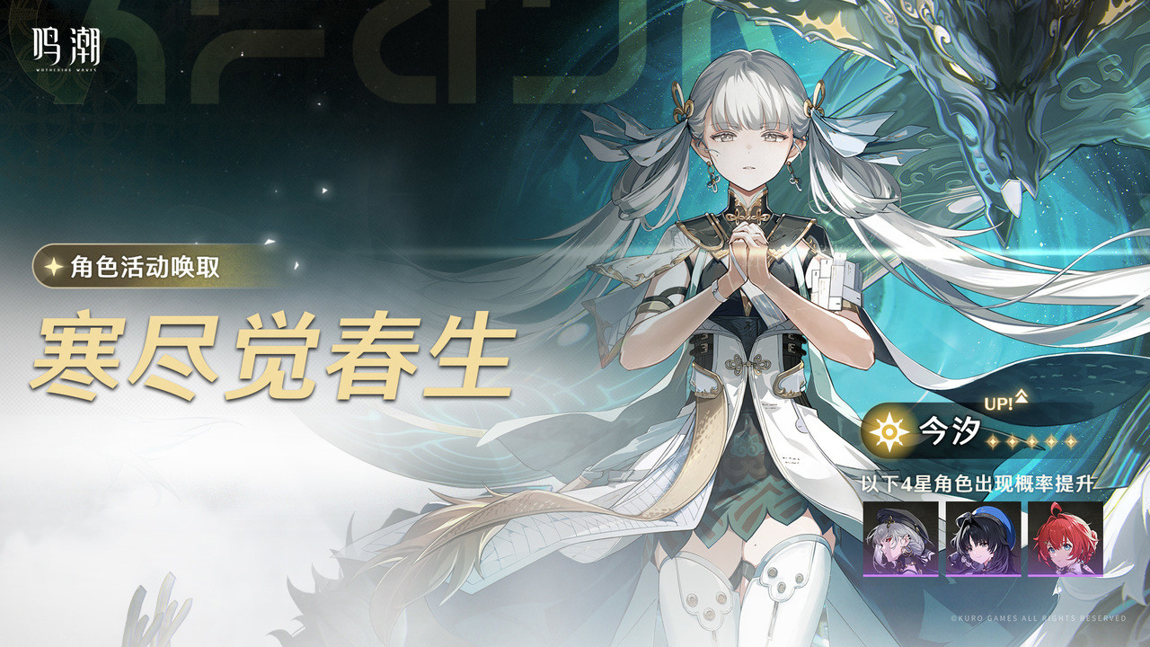 活动期间UP角色「今汐」仅可在<寒尽觉春生>角色活动唤取中获得,活动结束后暂无获取途径。
