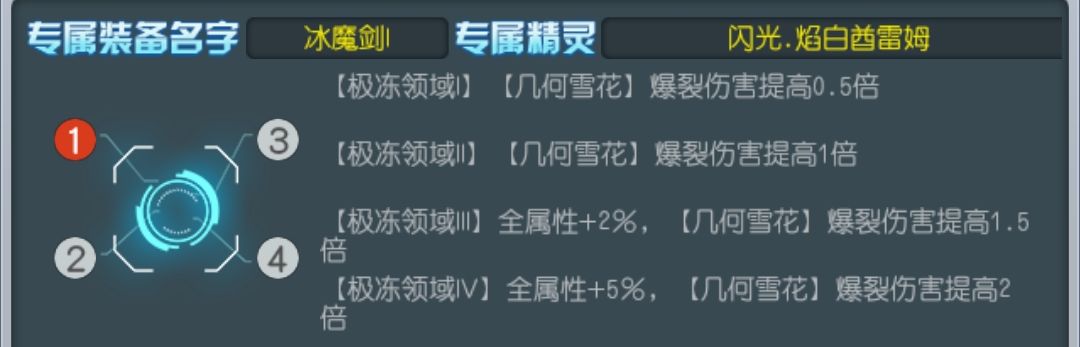 七星专属[极冻领域IV] 全属性+5%,[几何雪花] 爆裂伤害提高2倍