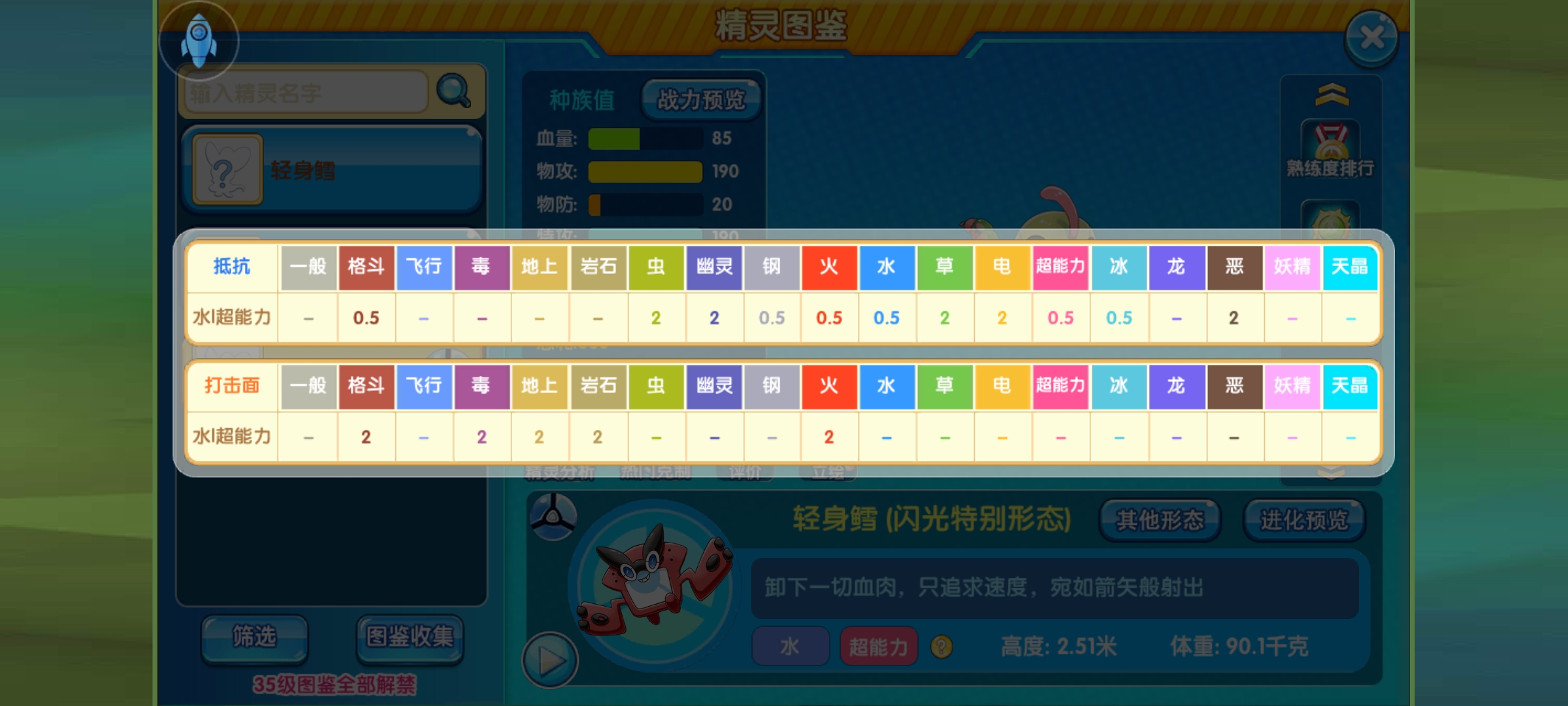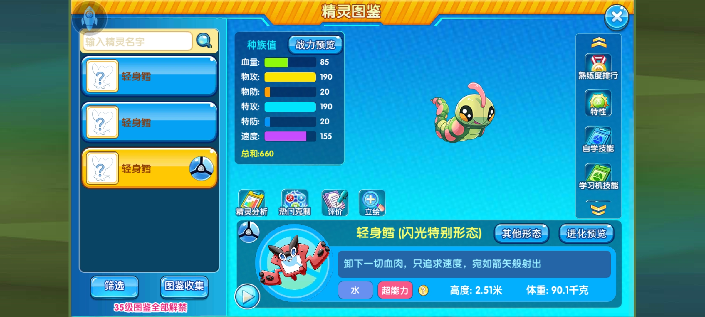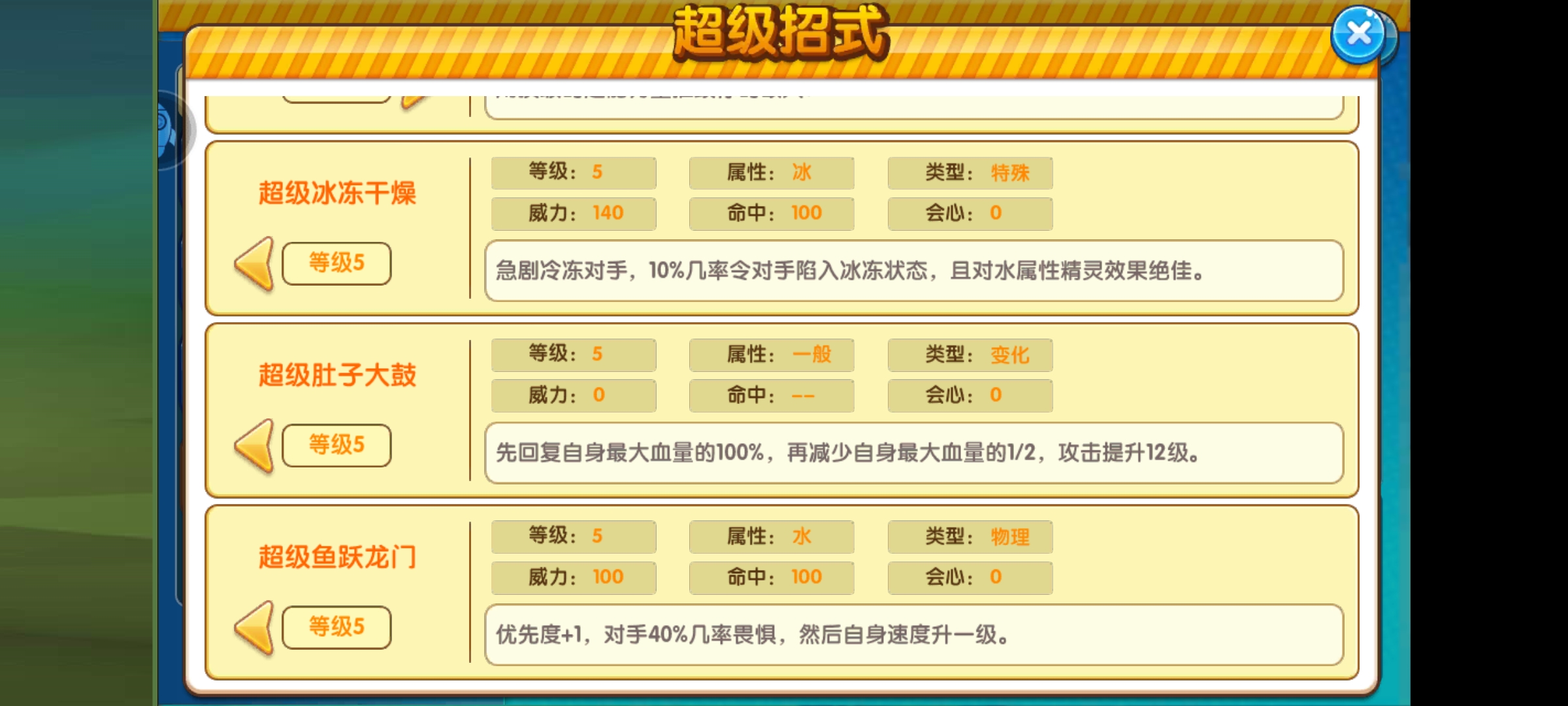 它的Z技能有6个,首先前两个本系pass,没什么特色,其他的里面,我最推荐超级鱼跃龙门,即便对手想用先制打你,你也可以用先制先手攻击对手并40%概率一回合退缩对手。