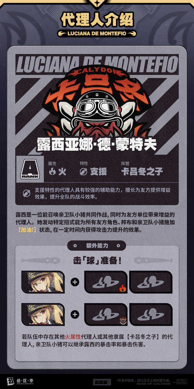 代理人机制介绍:露西篇光环-小Y发布于 2024-07-02关注代理人机制介绍:露西篇 更新即将完成…资料库中已收录代理人【露西亚娜·德·蒙特夫】的战斗相关信息,重点内容解析完毕,请查收。 「马上赢你,让本小姐先坐会儿~」——欢迎来到新艾利都!——