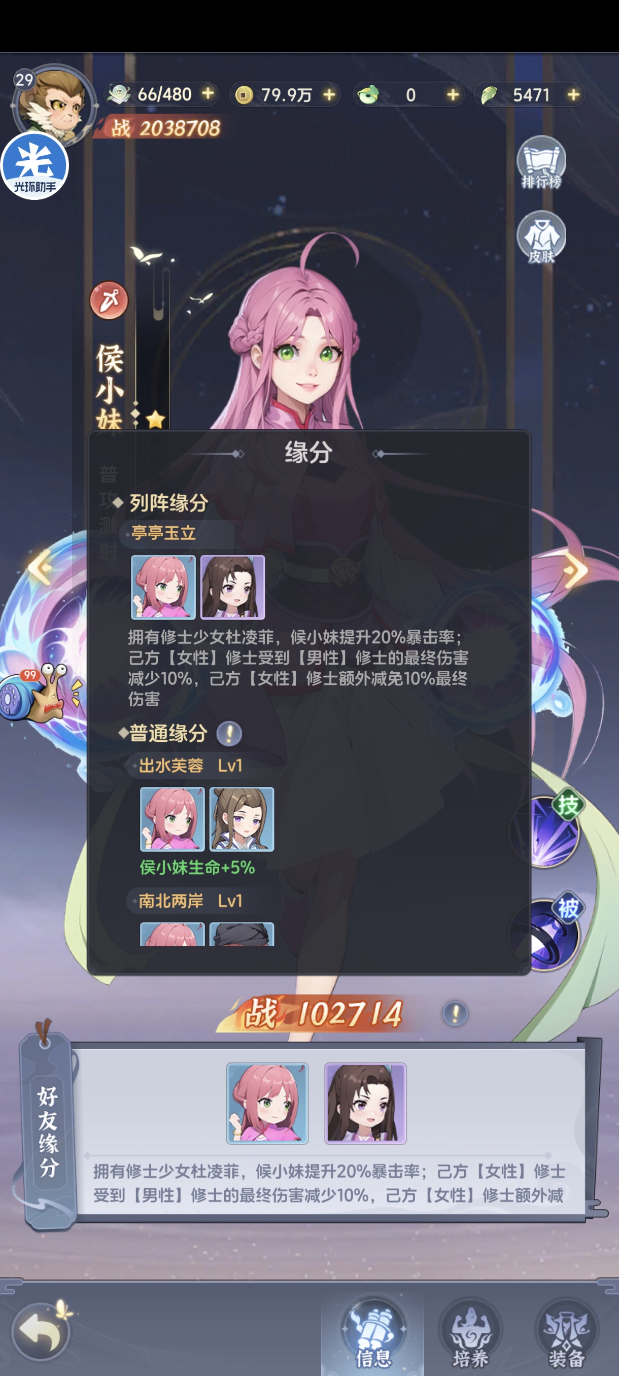 阵容既然叫女团,那肯定是围绕女性英雄展开的搭配,因为侯小妹的缘分可以提升所有女性10%最终减伤,在受到男性攻击时再降低10%最终伤害,对女性英雄整体坦度提升极大。