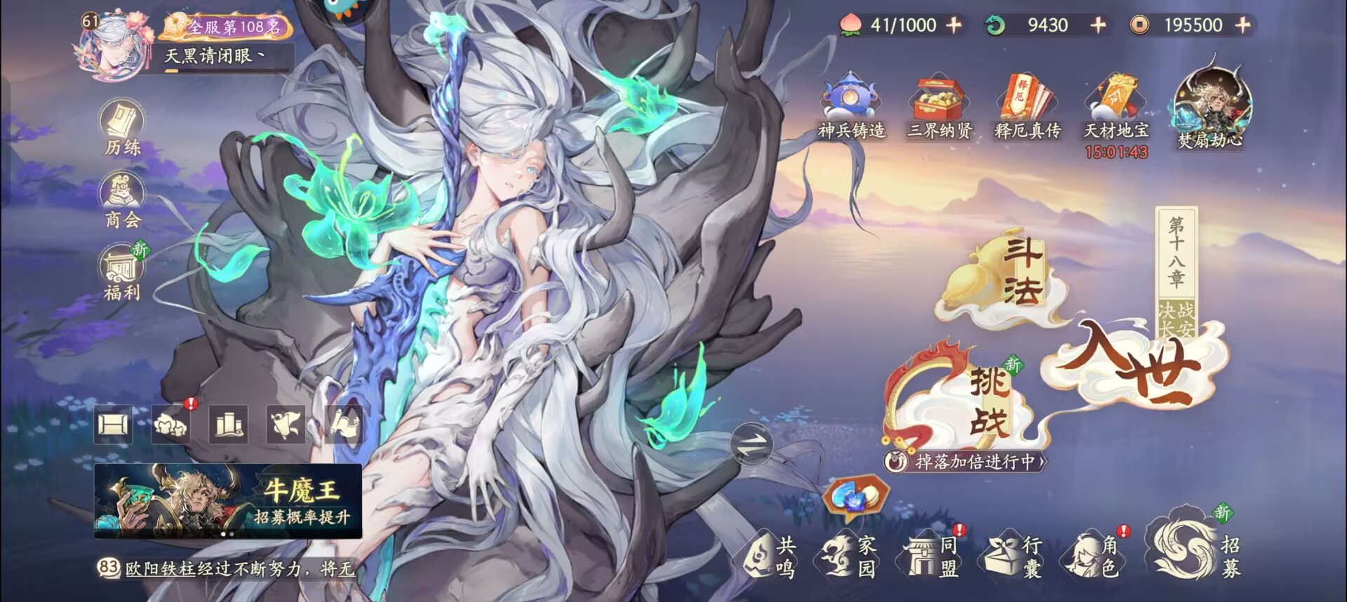 同时本系列的攻略狮子也是借助了一位来自九游高练度大佬的号:id:天黑请闭眼。来做本一系列的攻略。