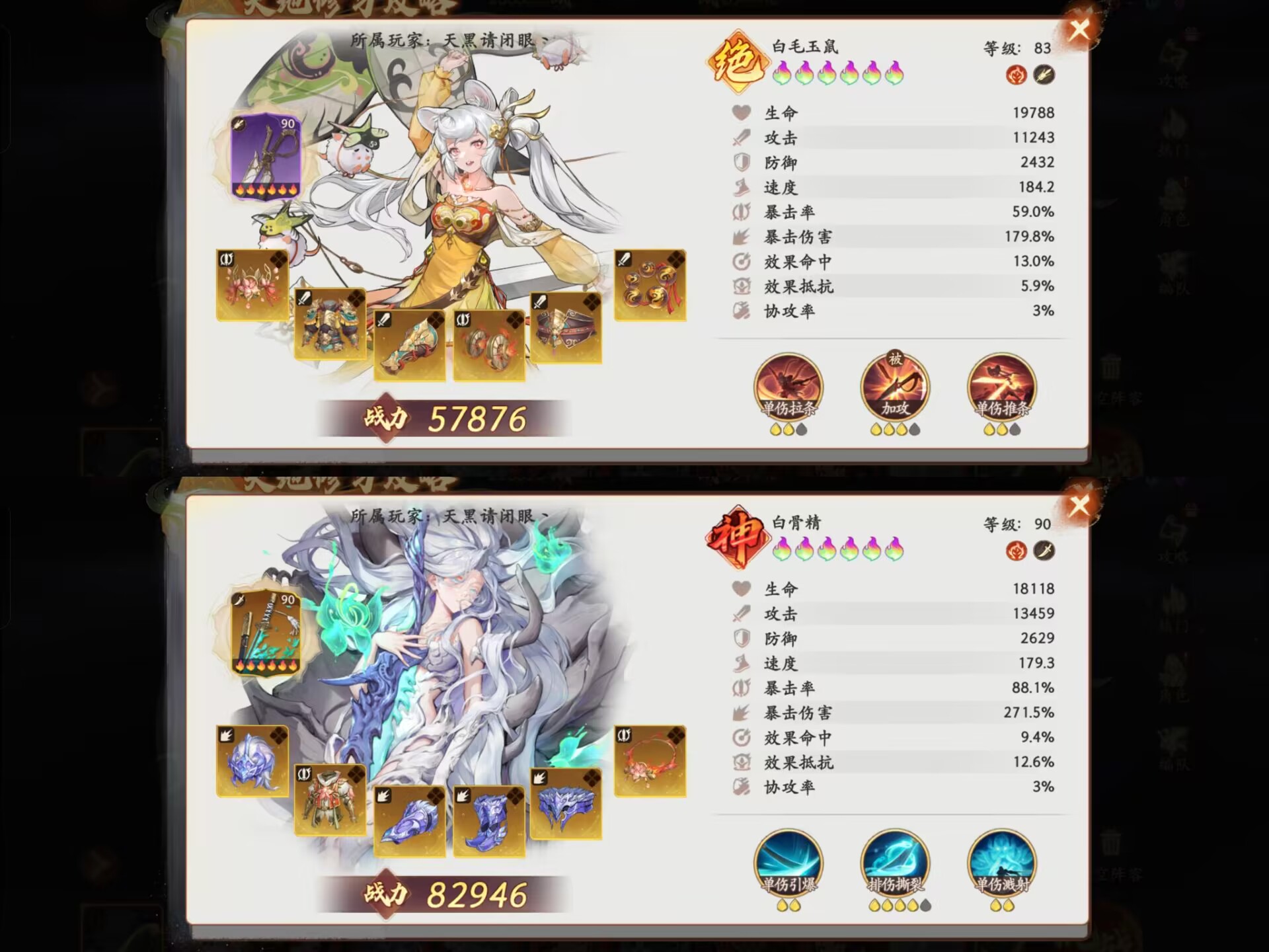 ④白骨精:最少彩三。需要高练度,是我们输出的核心。品质必须突破神。