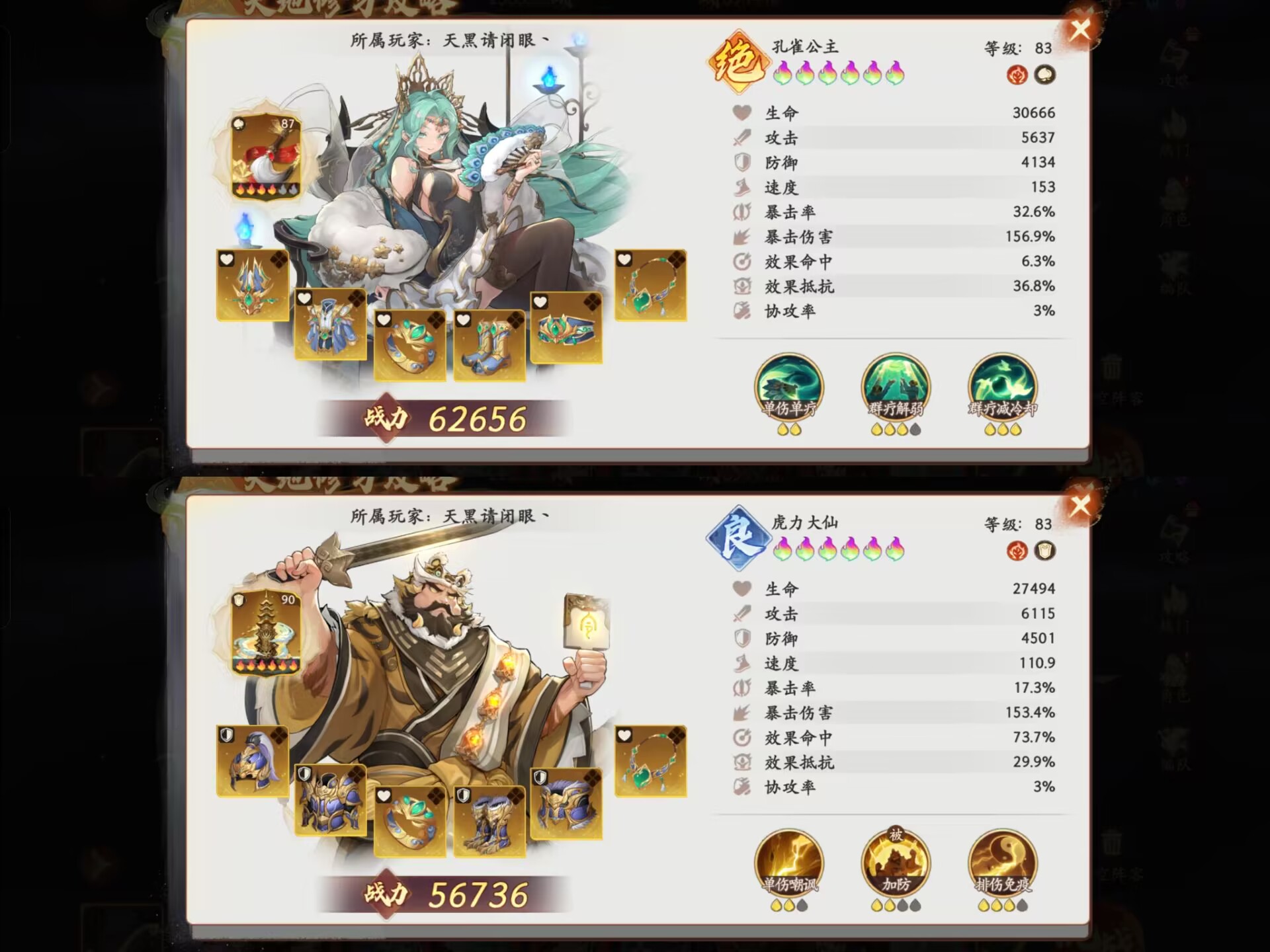 ⭐详细可以参考下面的配置。孔雀公主+虎力大仙练度参考。: