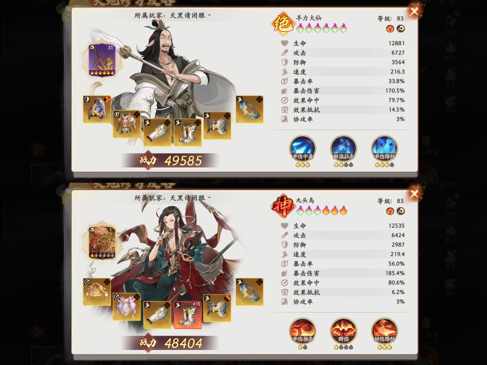⑥九头虫:彩三。没有彩三也影响不大,核心是九头虫品质必须突破神,因为要解锁大招的中毒效果,配合羊力大仙打中毒伤害。命中最少70%以上。