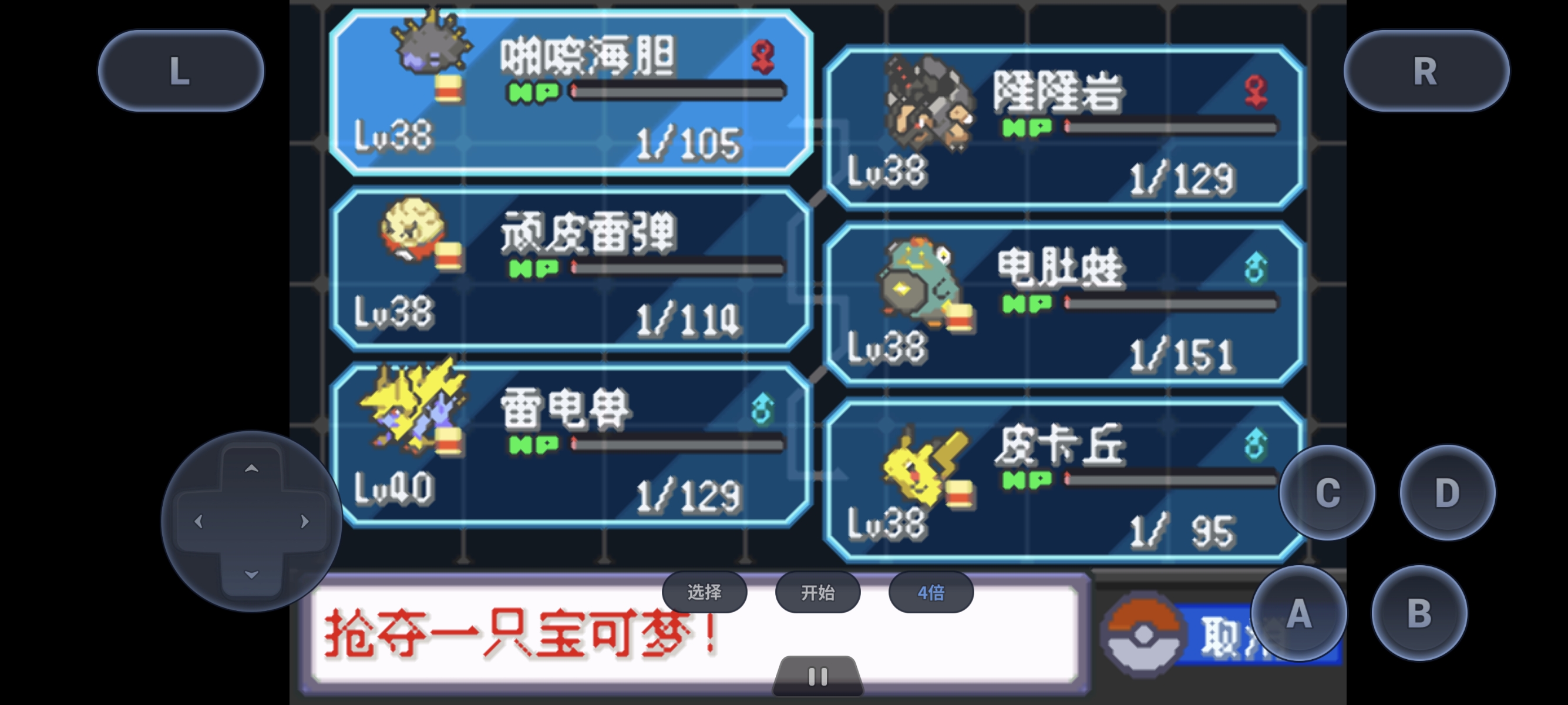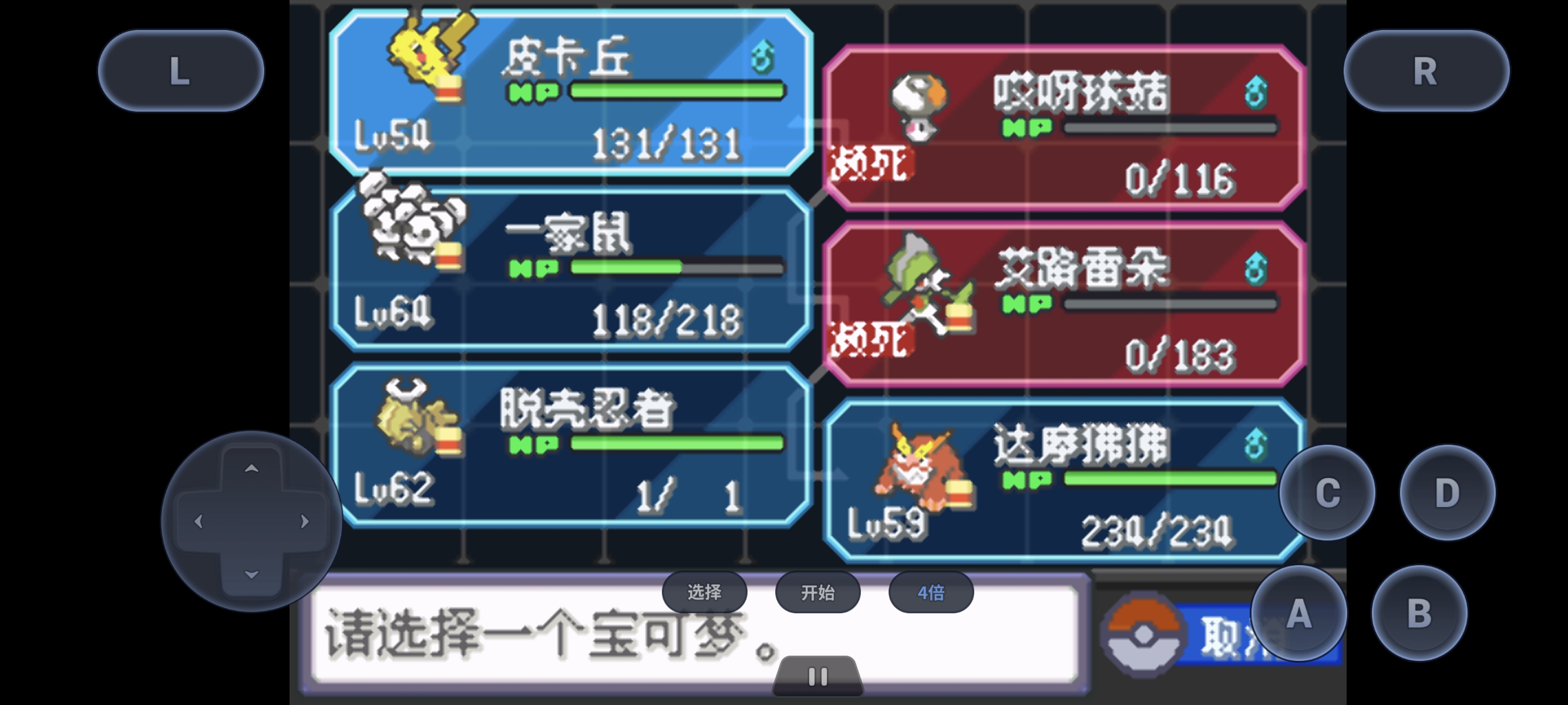 双打状态,皮卡丘击掌奇袭为哎呀球菇创造麻痹粉环境,皮卡丘切一家鼠叠大扫除,哎呀球菇清除之烟消除吃吼霸强化状态,期间穿插伤药回血,5-6层大扫除后鼠数儿最后击杀吃吼霸。