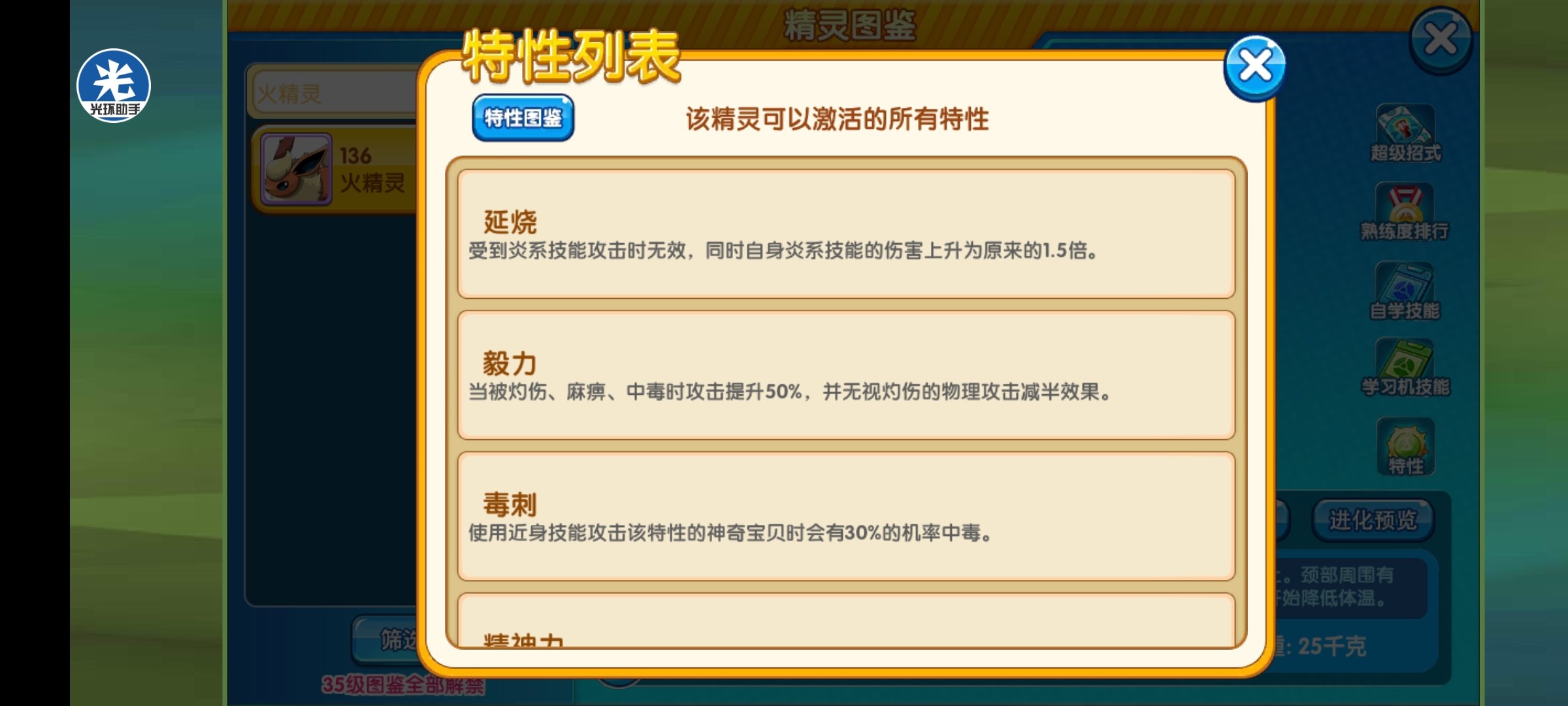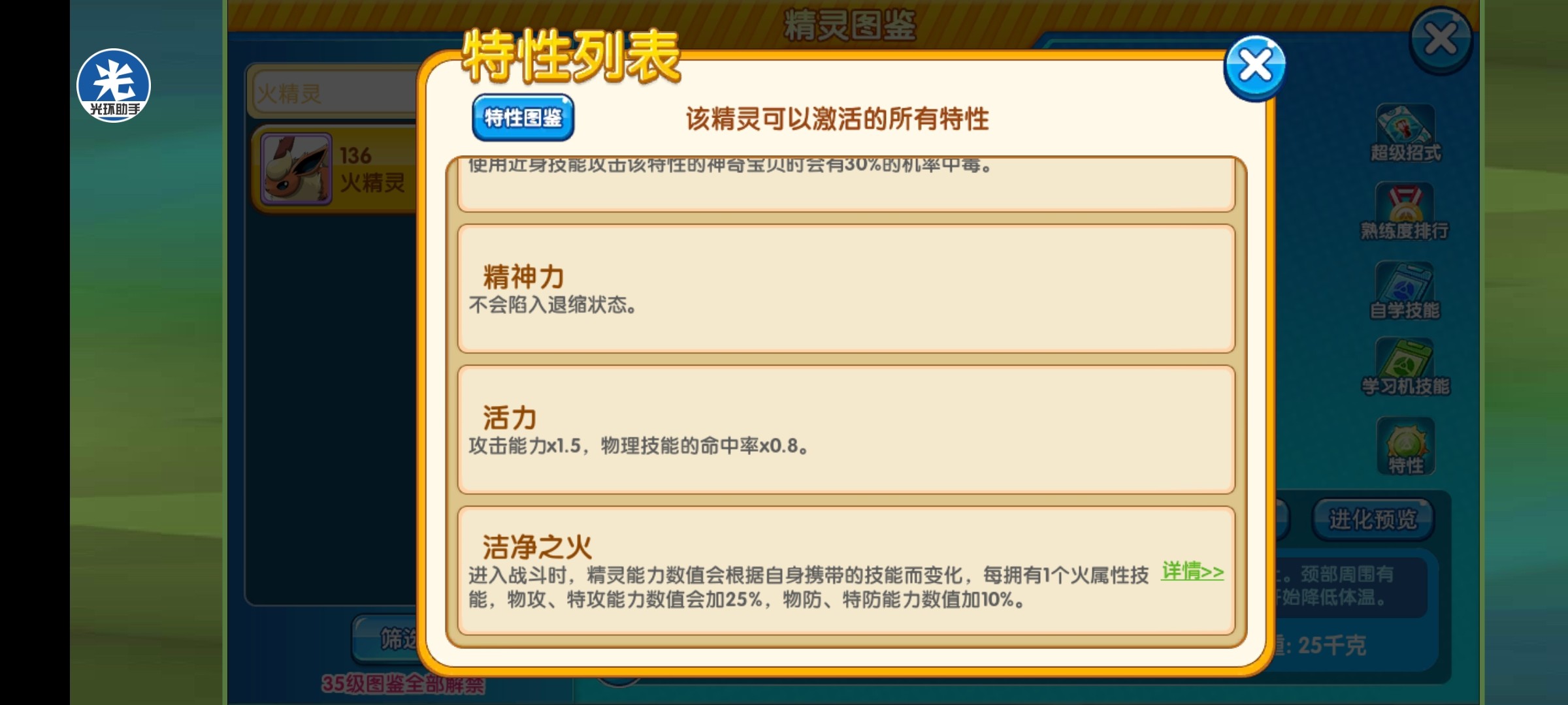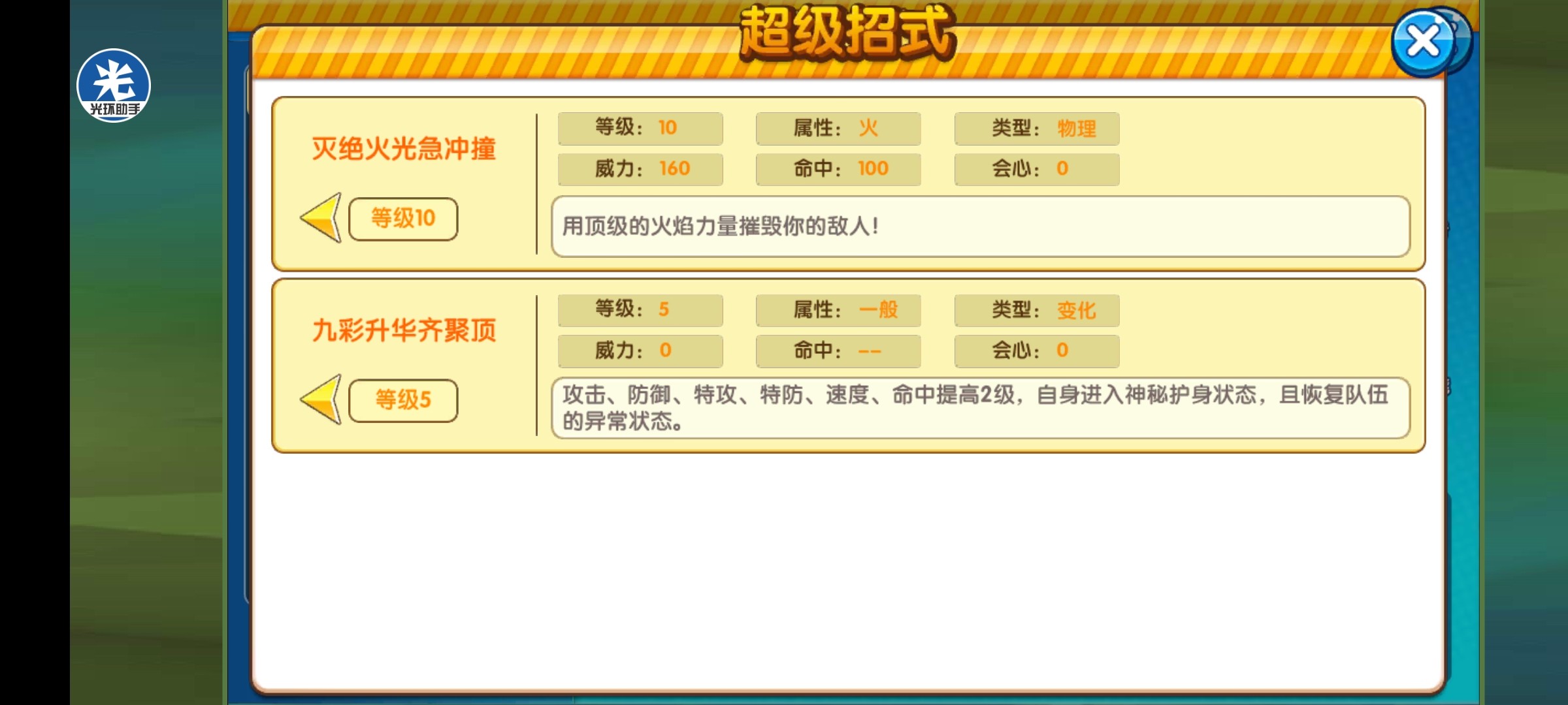 它的大招只有两个,当然只推荐九彩升华,这是伊布族的大招,加成给力,开大后可以赋予精灵一定的推队能力。配合烈火爪击可以无视特性攻击,所以说继苍响后又一只后知后觉宠的克星。