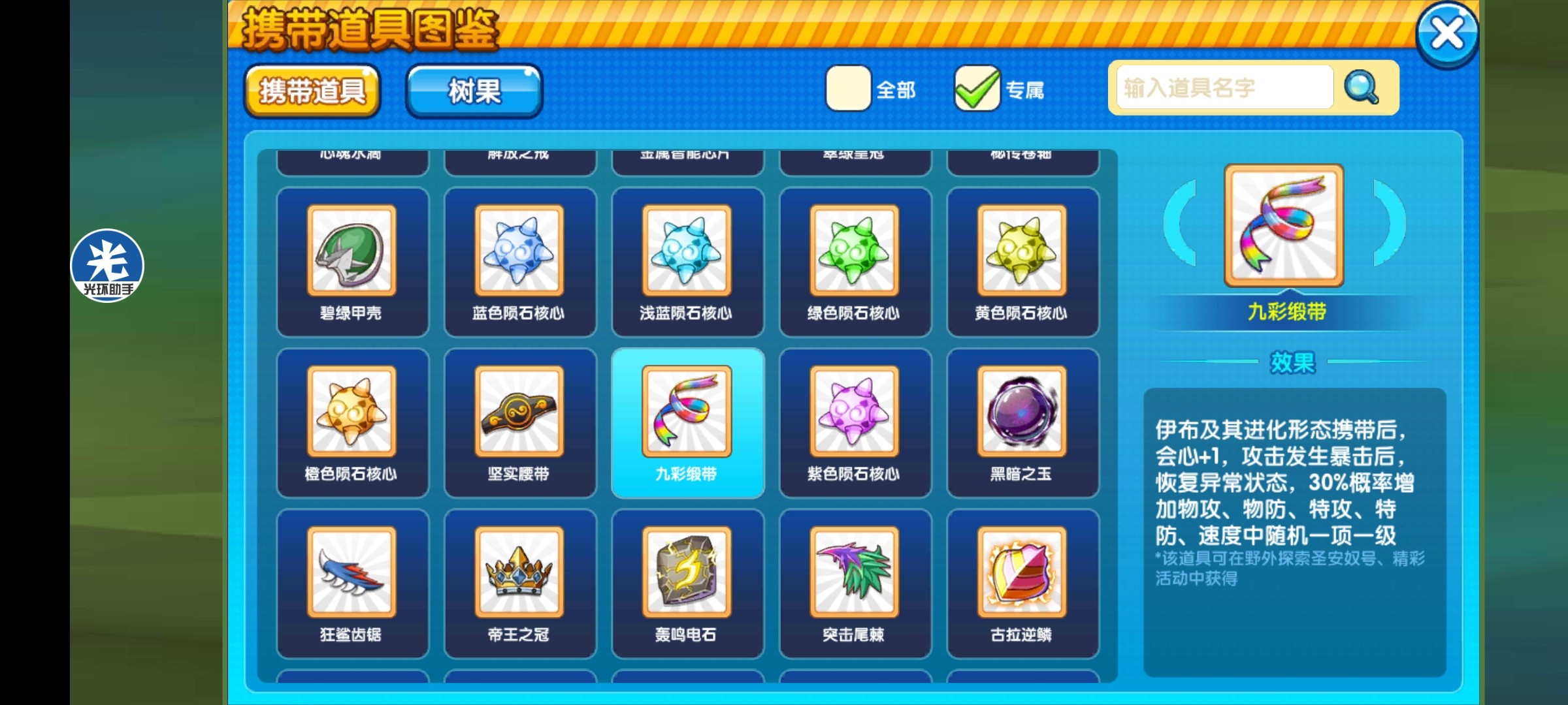 首先推荐九彩缎带,伊布家族专属,它也可以携带,如果没有也推荐木炭、明玉,树果建议带沙鳞,免费果实,对平民很实用。