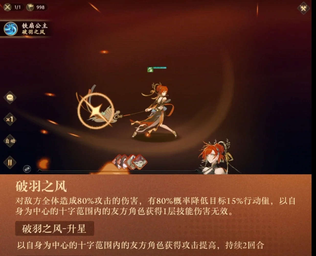 铁扇公主的2技能获得新回合,并且也有强力的对单能力可以优先锁定后排,还能给队友提供免伤和加攻,以及降低敌人行动值,可以说pvp配合高速队,绝对是新版本T0的组合。