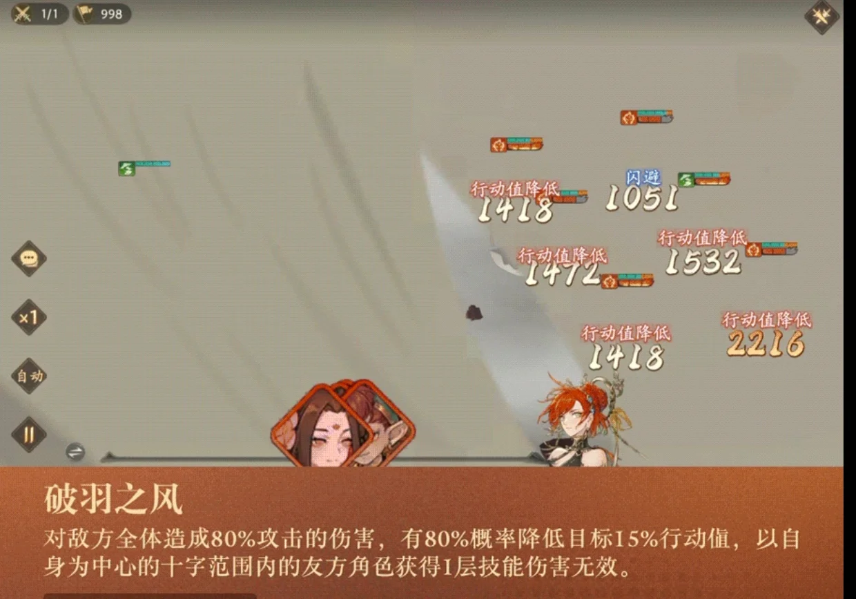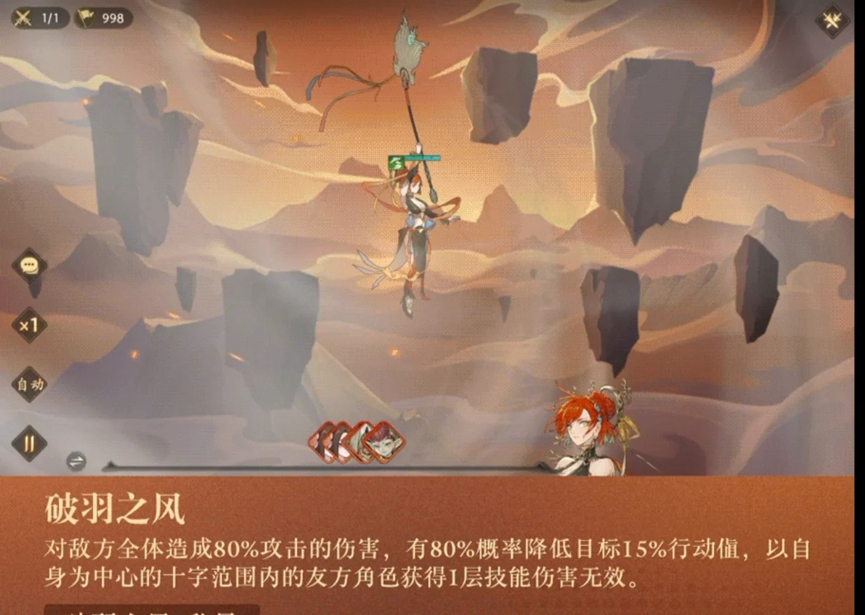 3技能为:【破羽之风】。3技能全体aoe伤害+降低目标行动值+十字架范围技能无效。