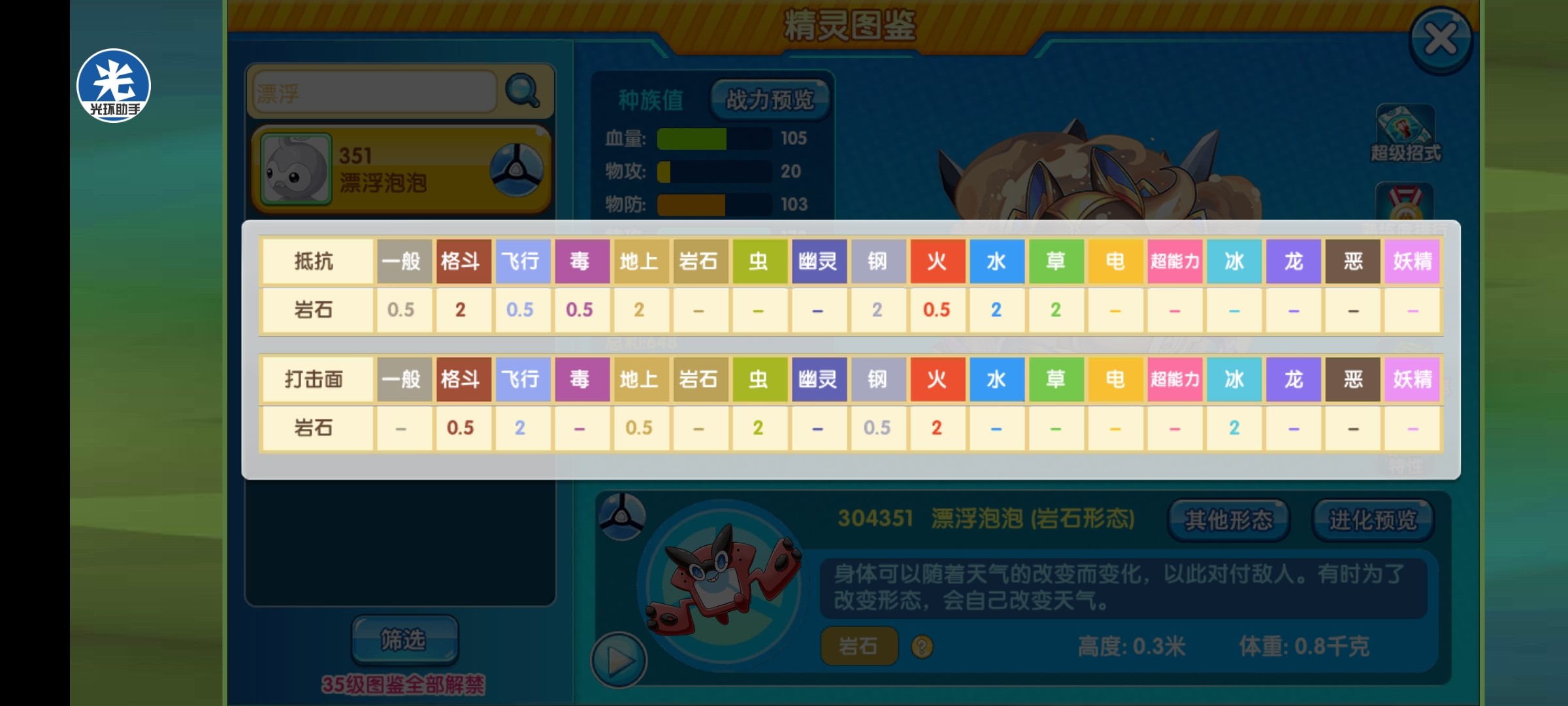 漂浮泡泡原版中只有三个天气形态,而复刻多加了个岩石系,这个是由沙暴天气引起的,这个特性下,虽然双防一般,但是有着沙暴加持其实可以联防一些不克制的特攻技能,而漂浮泡泡的玩法,也是非常吃操作,你必须要把对战节奏掌握好,才能在需要的时候使用自己的天气,否则可玩性不如普通天气手。我是@白,希望大家能点赞支持一下,非常感激。我们下期再见!