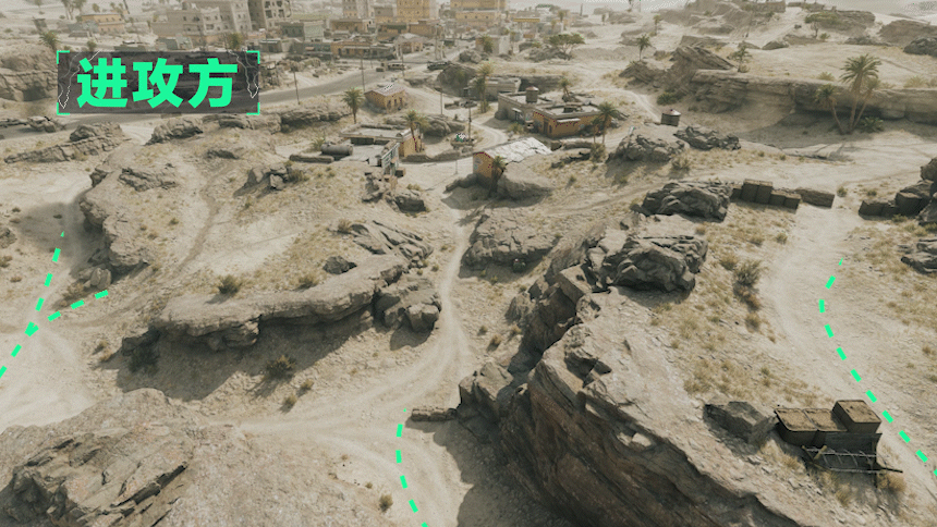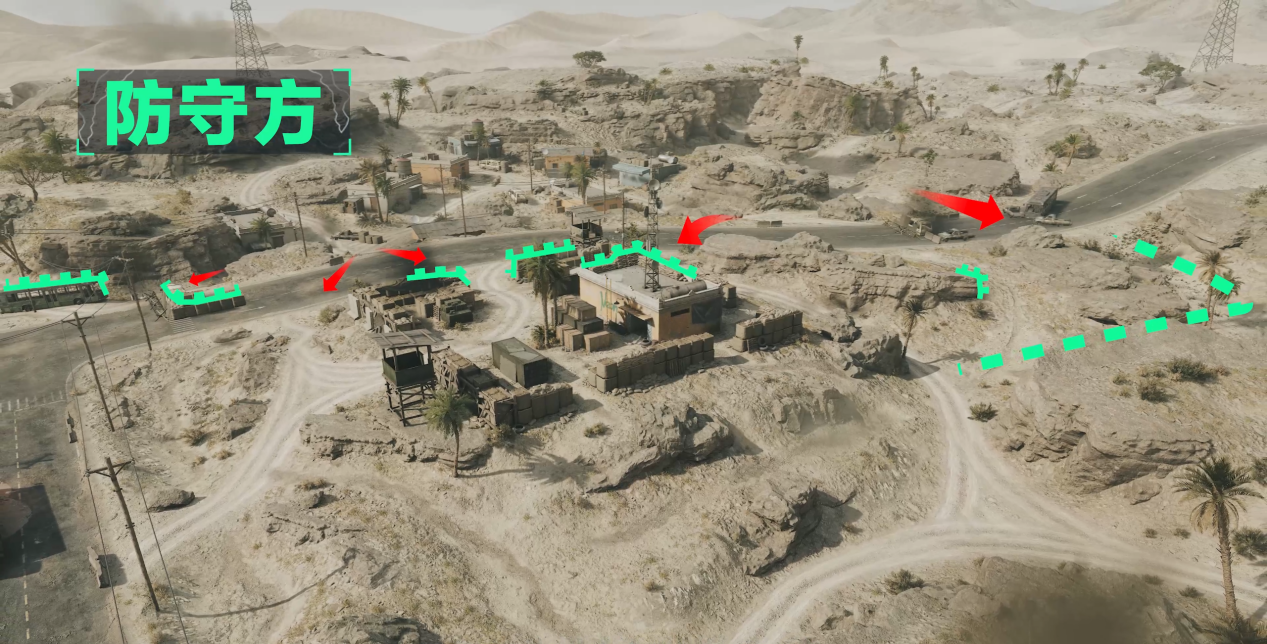你需要了解战场布局,攻守双方将在小镇外围及内部的三个区域中展开拉锯战。