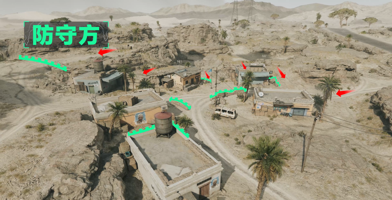 村子西侧的进攻方地势更高,有多个点位可以看到村内防守方的具体动向并进行立体打击。
