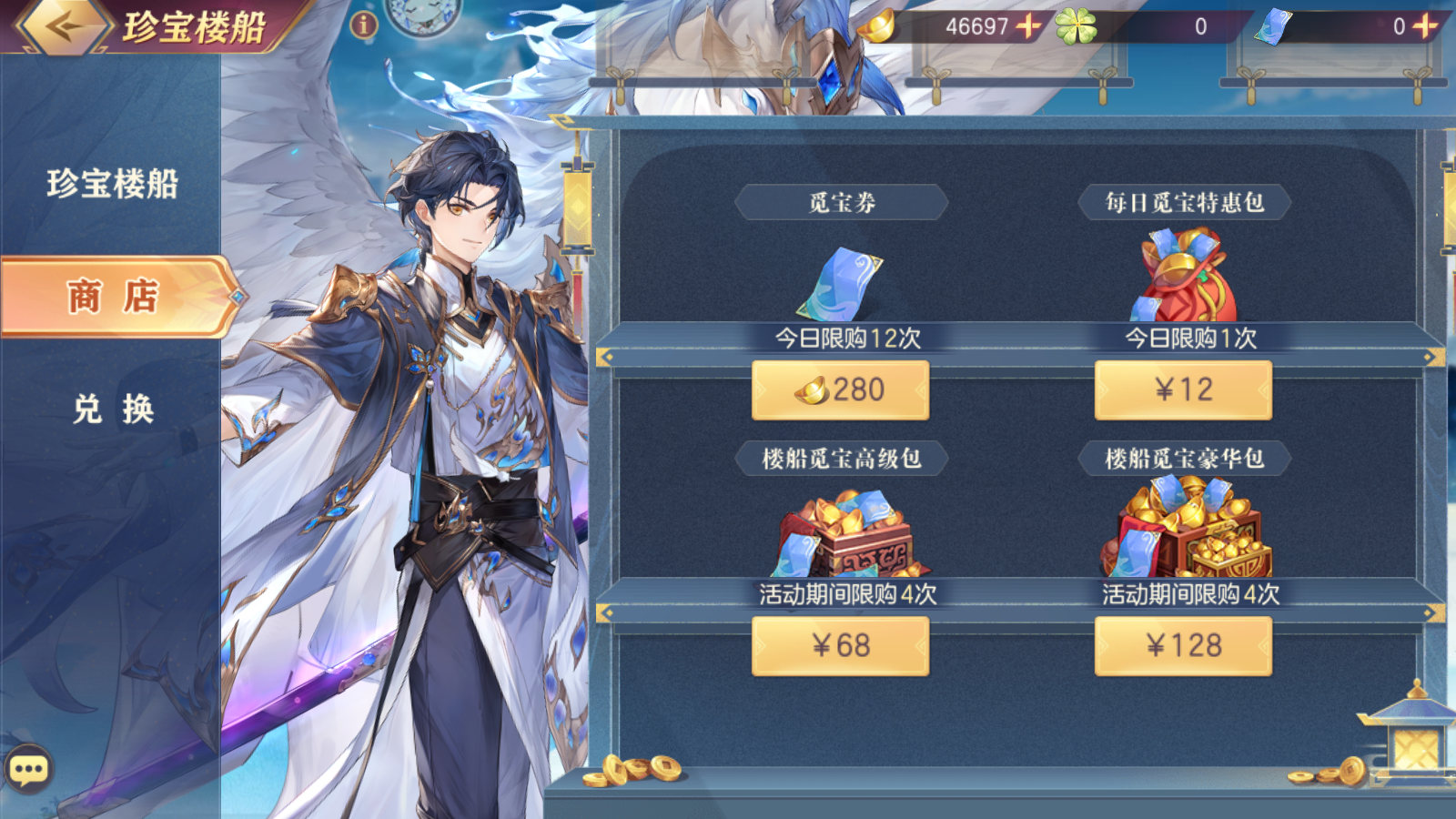楼船觅宝高级包:68元40张觅宝卷,实际卷数约为48张,单份高级包保底楼层3层,概率楼层3.2304层