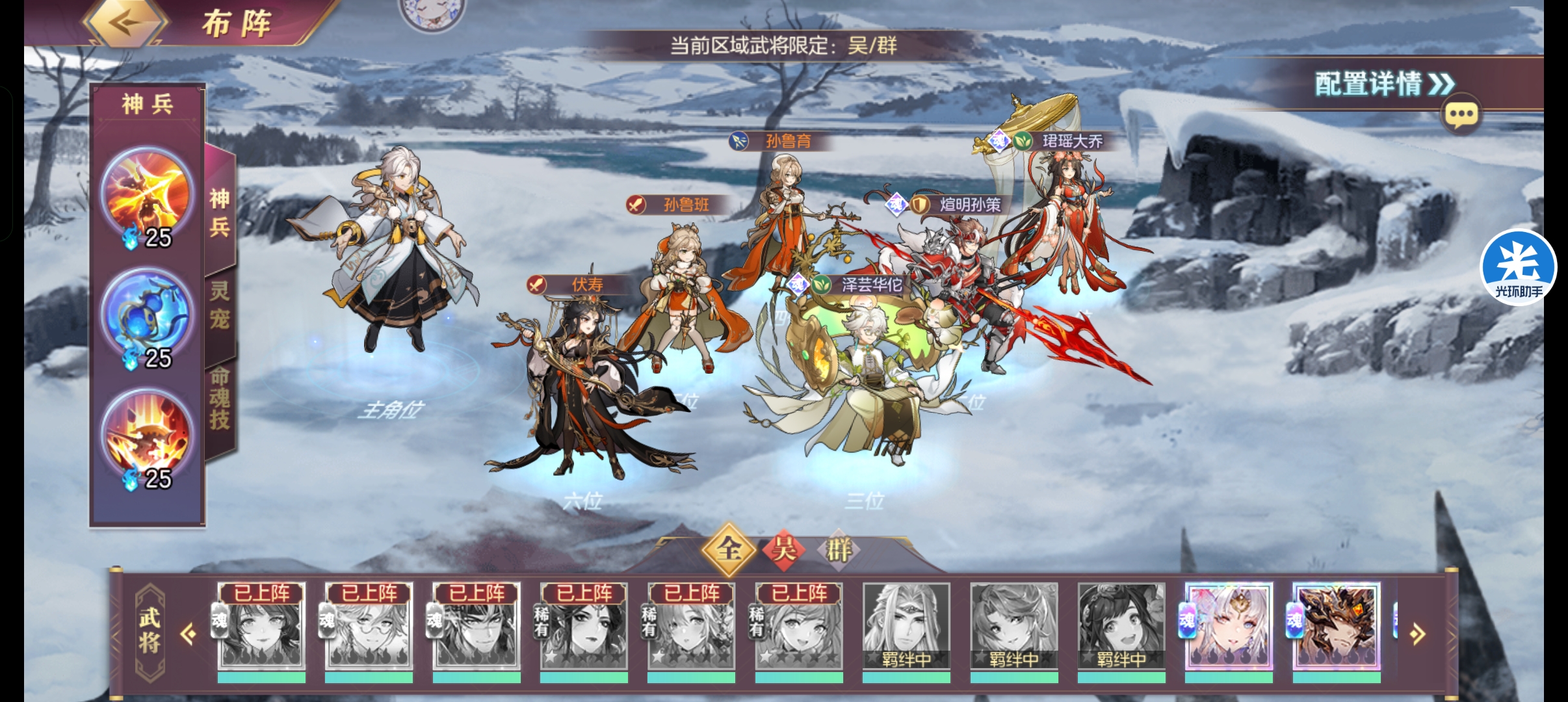 选择珺瑶大乔、煊明玄策、泽芸华佗、孙鲁育、孙鲁班和福寿