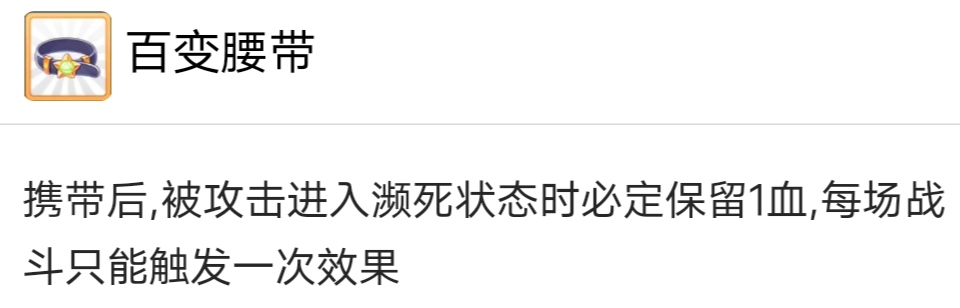 轻身鳕携带后,被攻击进入濒死状态时必定保留1血,这可以大大提高轻身鳕的生存能力,保证轻身鳕打出一个给力的输出数值。