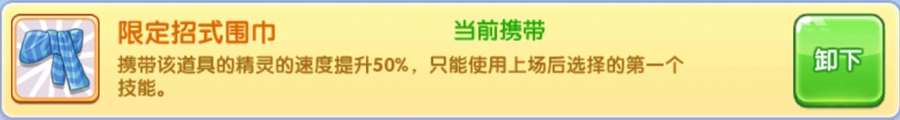限定招式围巾用于体系阵容,配合队友的精神场地来帮助自己免去那些先手技能的同时,顺风和限定招式围巾能为轻身鳕带来极大的收益。