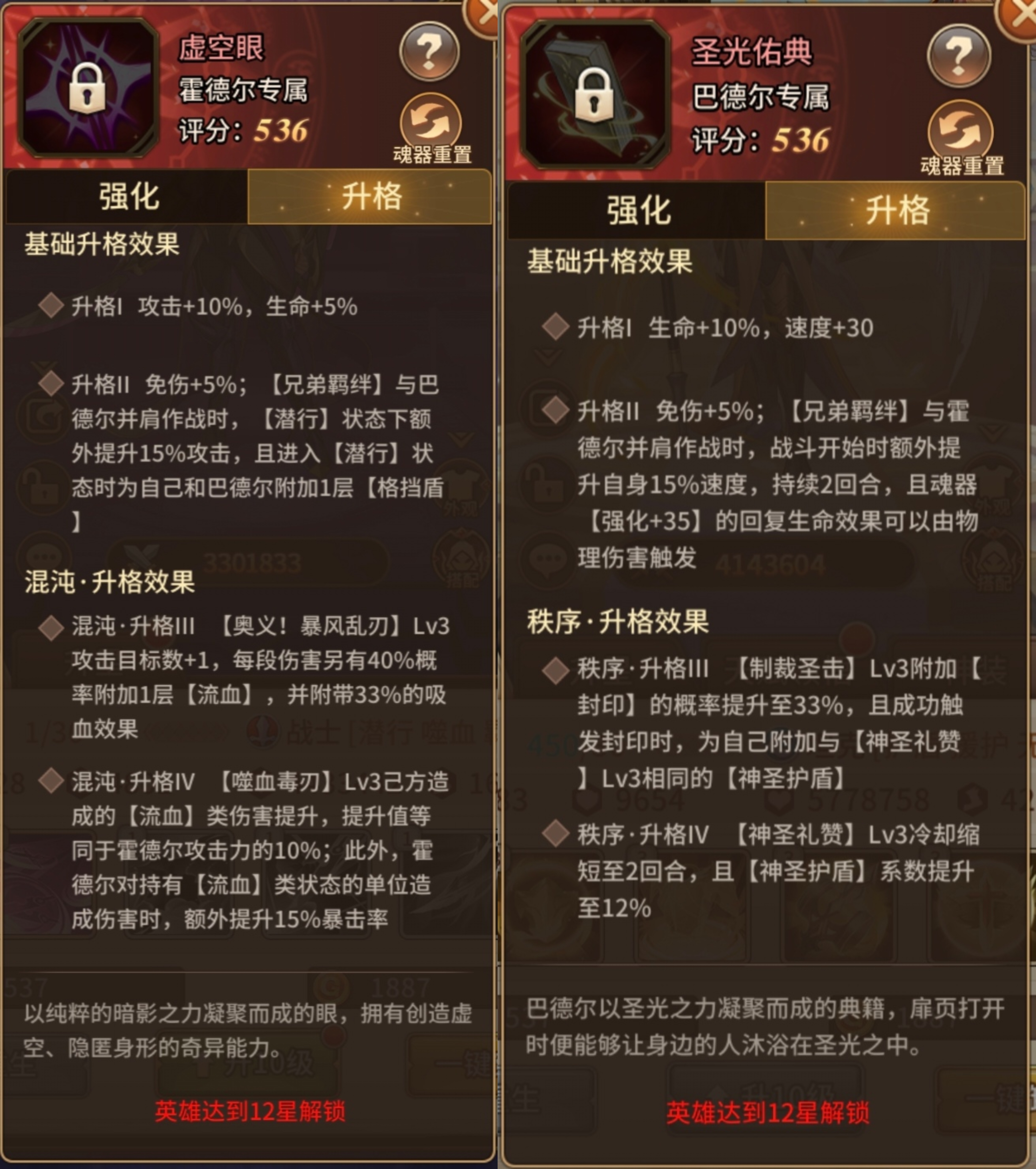 霍德尔在有巴德尔的情况下变身时间更长,输出能力更高,能够吃满魂效果。