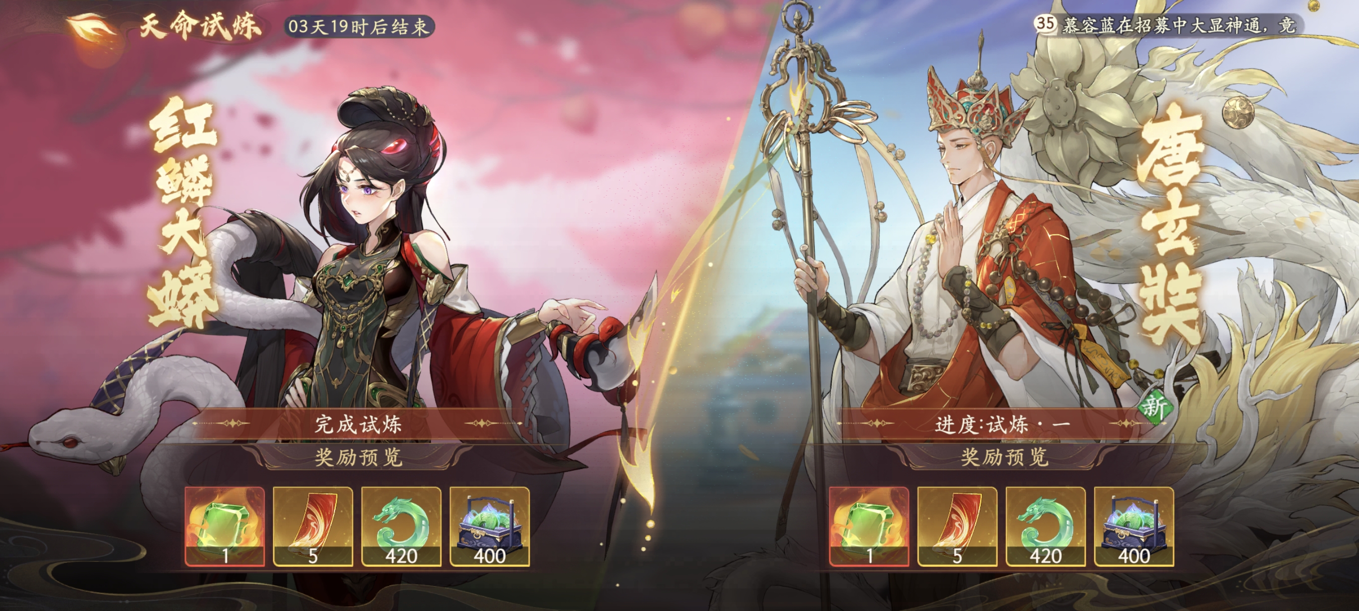 第二期的唐玄奘跟第一期的红鳞有很大不同,因为红鳞是紫卡所以是肯定满星的状态,但是唐玄奘是橙卡,绝大部分玩家是没有满星的。如果玩家有彩3以上的唐玄奘,那么推荐还是用自己的比较好,如果没有也不要紧,直接用系统送的就行。