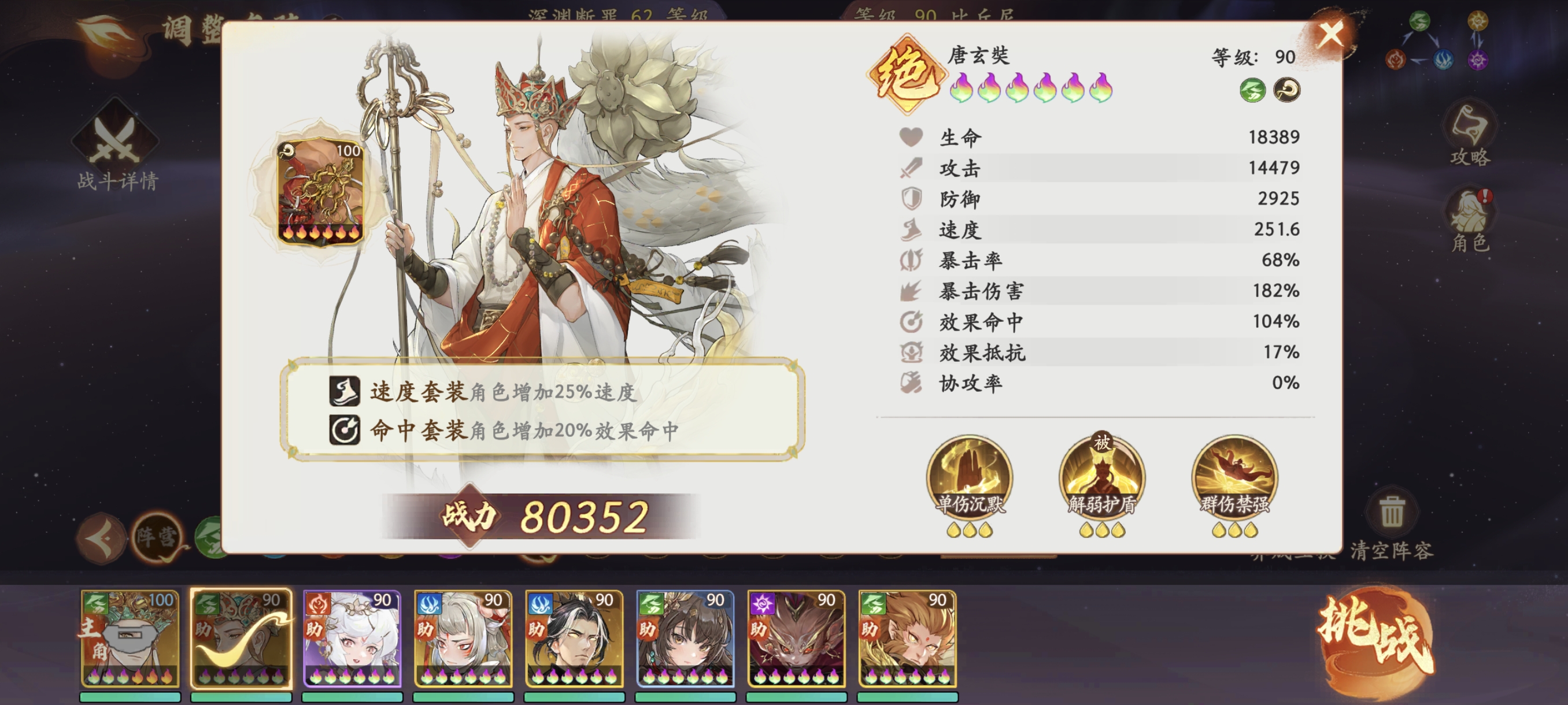 2技能可以让唐僧在对面可以挂弱化的时候作为肉盾站在前排抗伤害,提高生存能力。