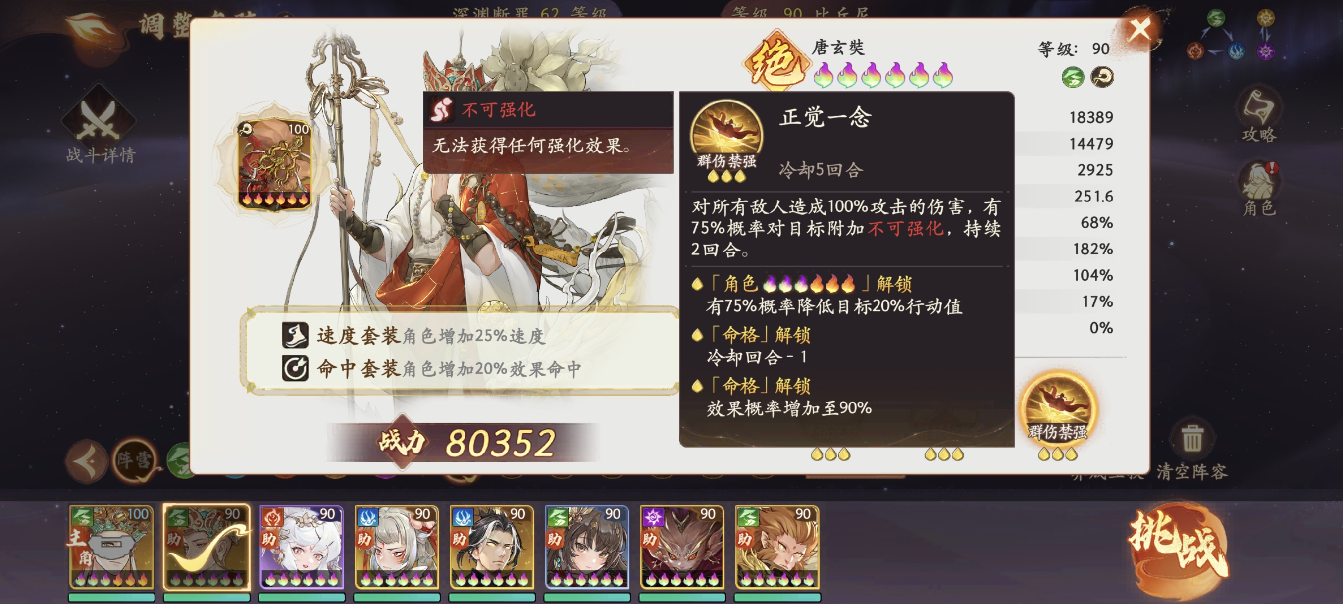 这也是系统送的高速唐僧打辅助的最主要的原因,面板251速,机制又加了25速,速度直接飙升到276,只要攻击没有强化的目标,就能一直触发引导,变相提高我方输出。