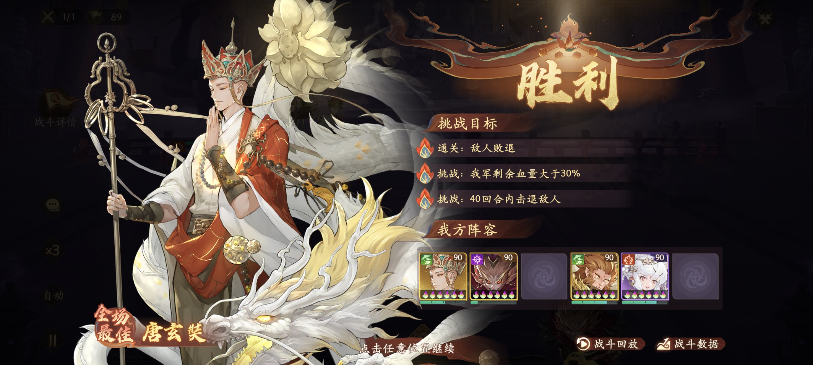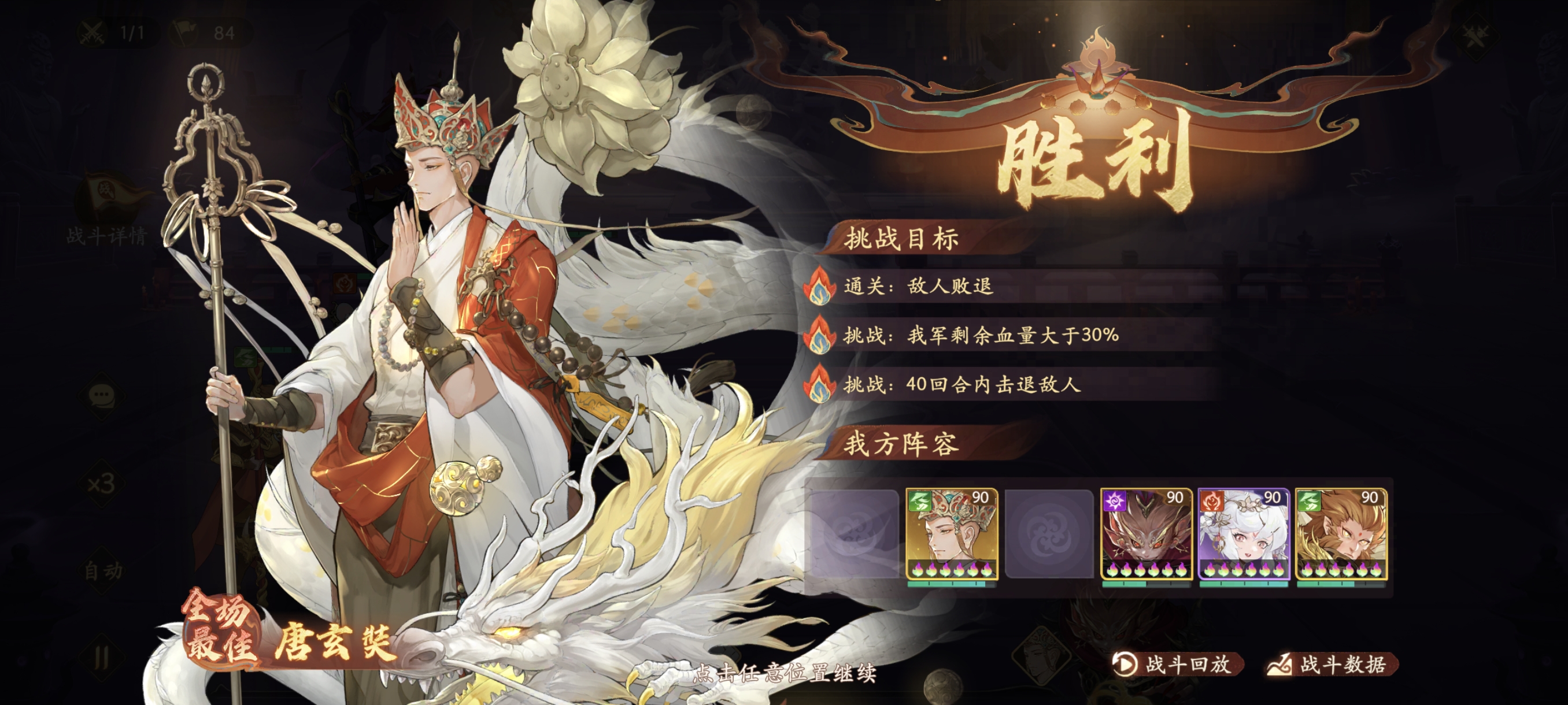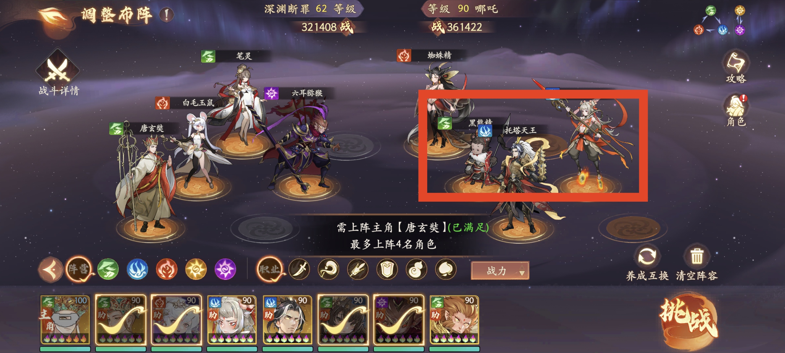 本关难度开始提升,对面输出很高,单唐僧已经扛不住了,还是请回托塔坐镇前排。