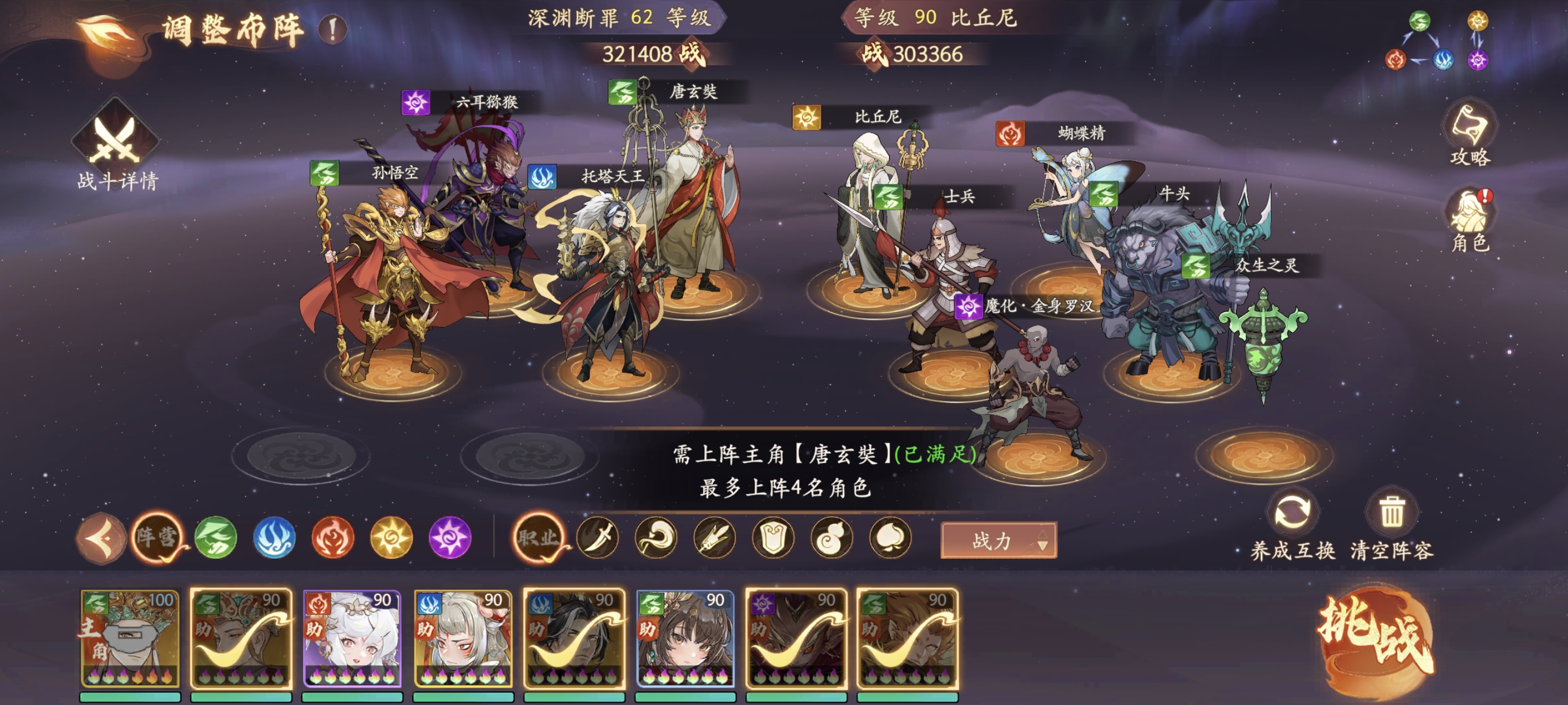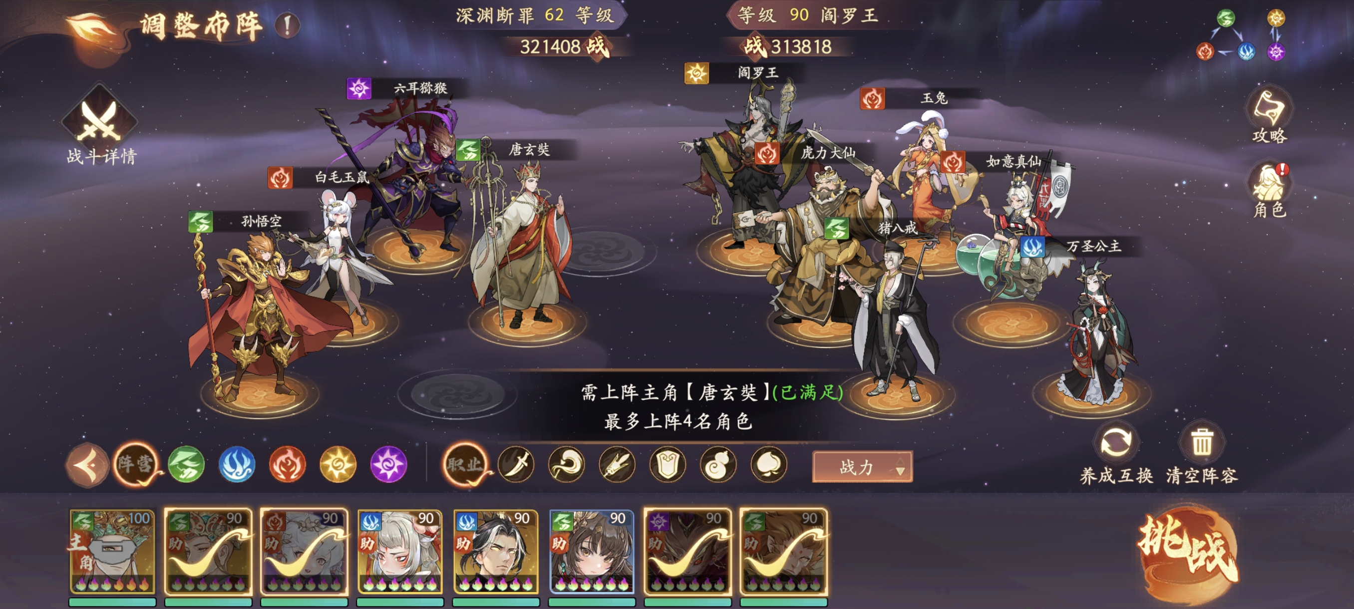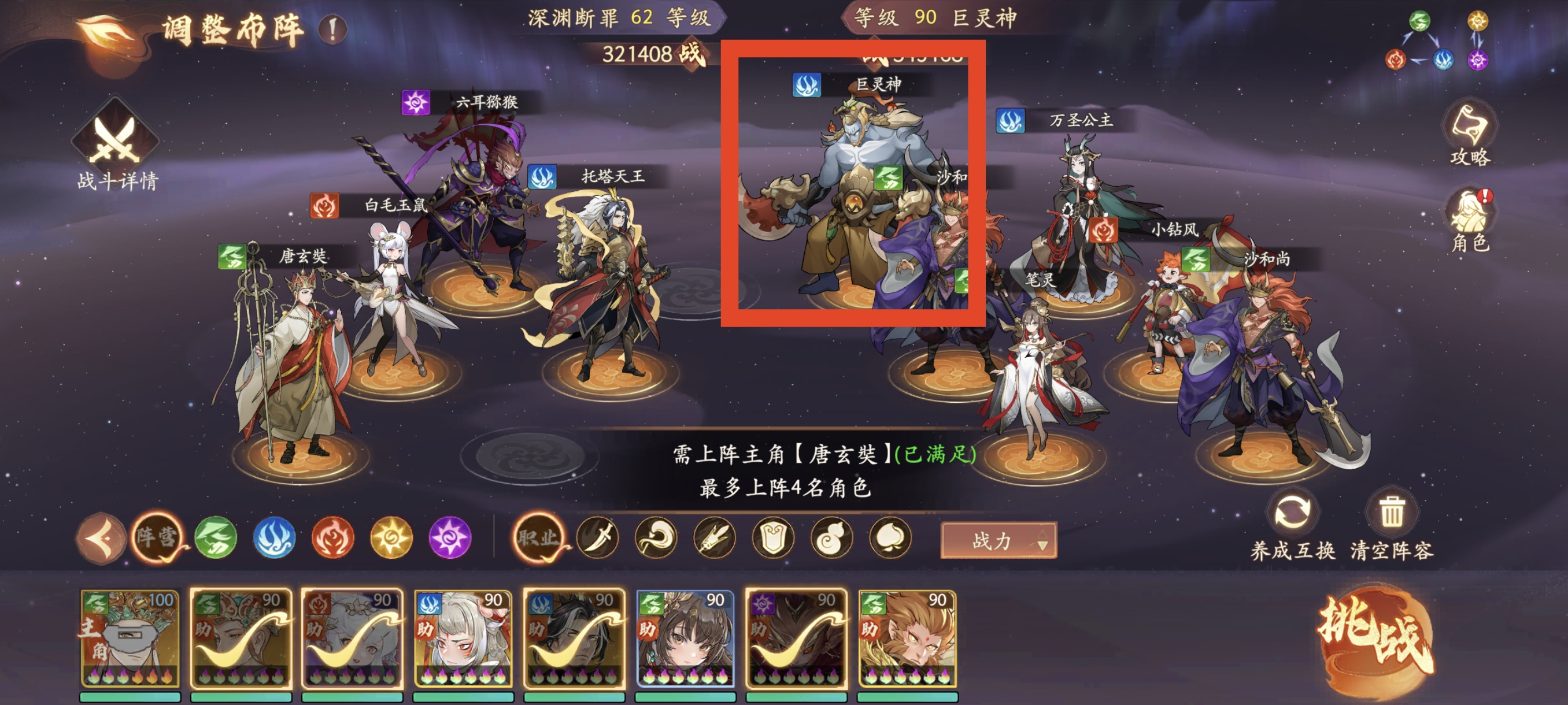 本关难度开始提升,对面输出很高,单唐僧已经扛不住了,还是请回托塔坐镇前排。