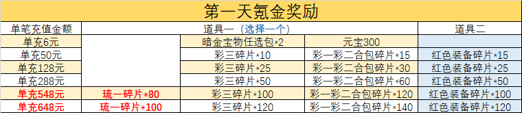 第一天氪金548+648可以出琉一武将,琉金品质武将前七天在副本和PK都想比其他武将有绝对优势(如琉金天赋)