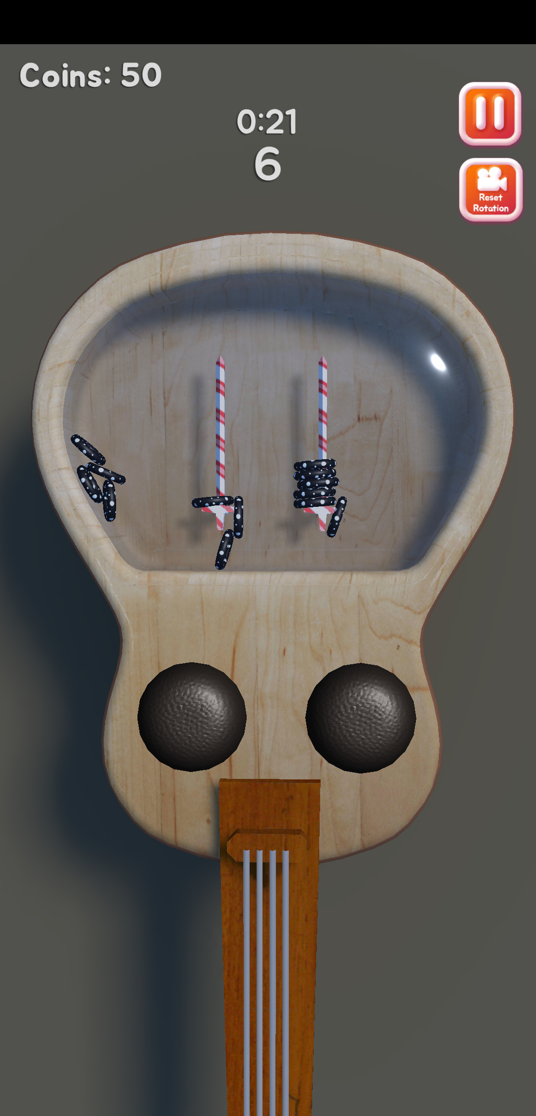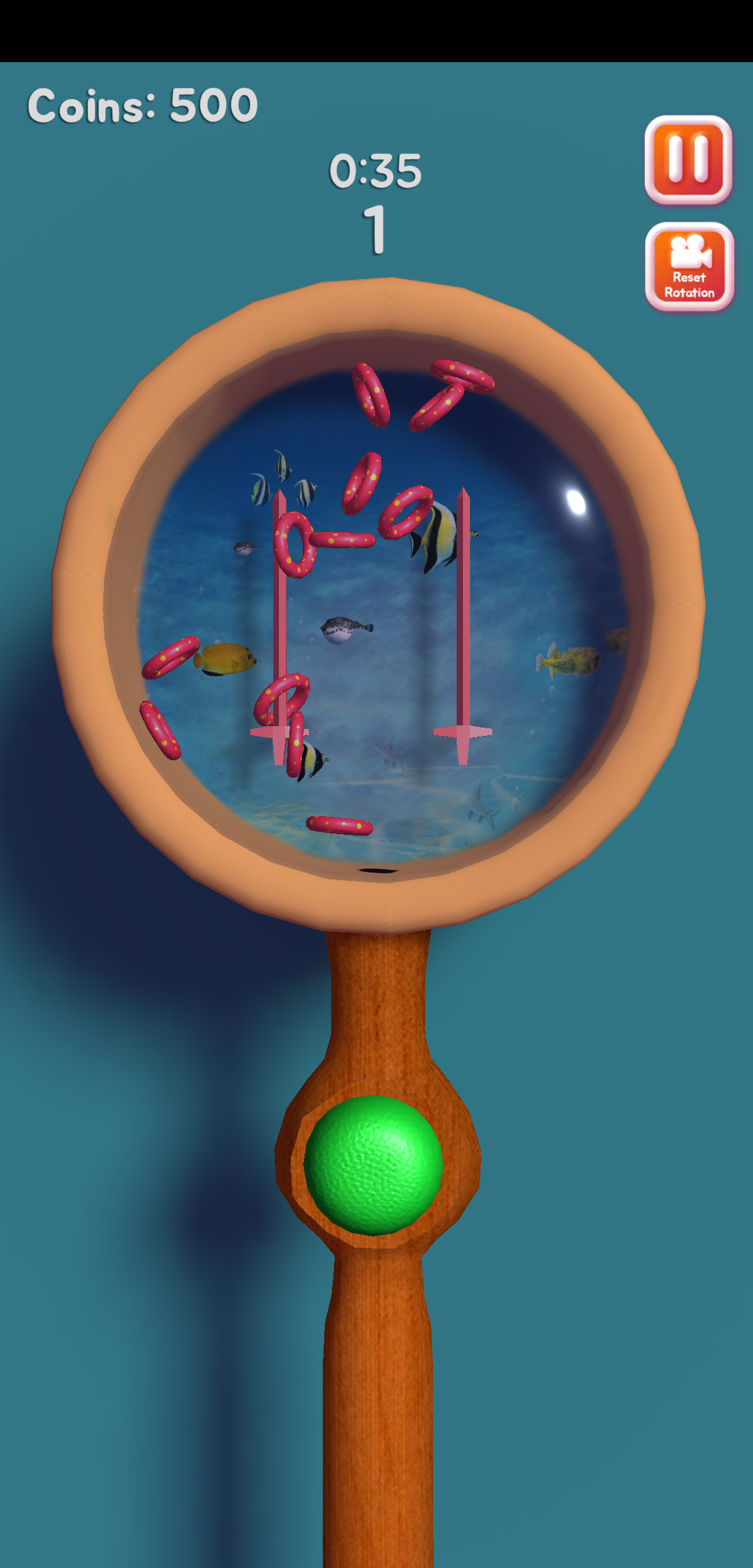 在游戏中,你还可以通过赚钱取金币来购买水压套圈机的样式以及套圈套杆的皮肤,这是一种享受的过程。游戏玩法人尽皆知,但是要成功过关却是一个不小的难度。我玩了十几次,成功的却只有两次,因为重力原因,有时候我把手机倒过来,想让底部的套圈套到套杆上去,但是这种情况下会让我已经套在套杆的套圈又给掉了出来,结果功亏一篑。