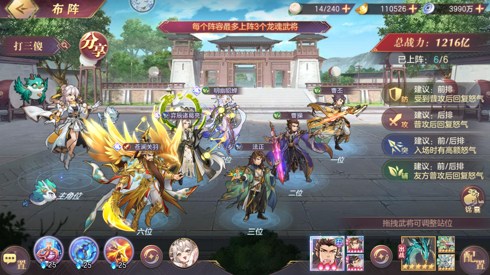 站位方面:曹丕不能动,其他可以根据自己的情况去调,现版本中,站位是一个影响很大的因素。