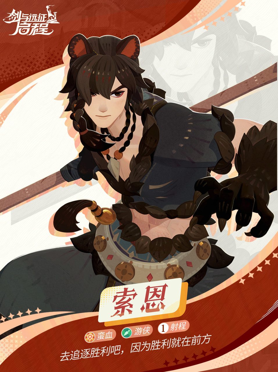 大魔法师好,史诗品质英雄「索恩」作为蛮血部落中的游侠,是冒险旅途中的好伙伴。现为大魔法师带来最新角色情报,一起来看看吧~