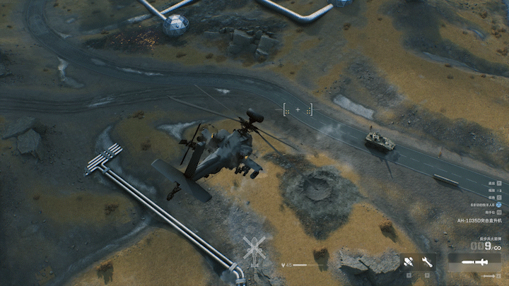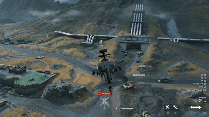 除了武器方面的灵活使用,主驾驶位还必须保障整个机组的安全,面对敌方的防空力量,切记要尽量保持安全距离迂回作战,保证载具的持续战斗能力才能把控战场局势。