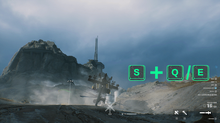 在介绍武器配备以前,我们先简单了解一下直升机的基础操作方式,这里以PC端的按键为例子:w键为上升,s键是下降,a键是左转向,d键是右转向。