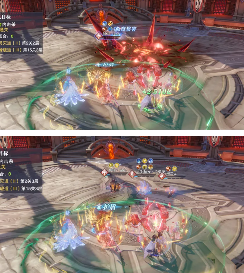 在上边的两幅对比图中,第一幅是我没带SP宁荣荣的右臂专属魂骨,而只带了SP修三的周年庆专属魂骨测试的,此时我的开局输出时无法击杀对方的SP尘心的,对方会不停触发不死效果;而第二幅图则是我既带了SP宁荣荣的右臂专属,有带了SP修三的周年庆专属,外加抢到了战斗的4神护效果,此时便可以直接击杀SP尘心,其根本无法触发不死效果。