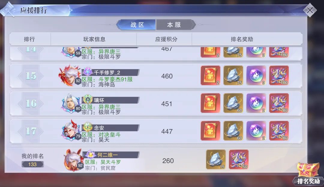 最后抽应援还有一个排行奖励......幅度还行,不过成本也是极为夸张的。总而言之,此次活动就是SP修三在上真身和第三专属魂骨前的一次大幅的耗钻活动,虽然在考虑回血后的成本消耗的确会有较大的缩减,但依然呈现的是一个不低的成本幅度,大家还请量力而行,切勿头铁吧!